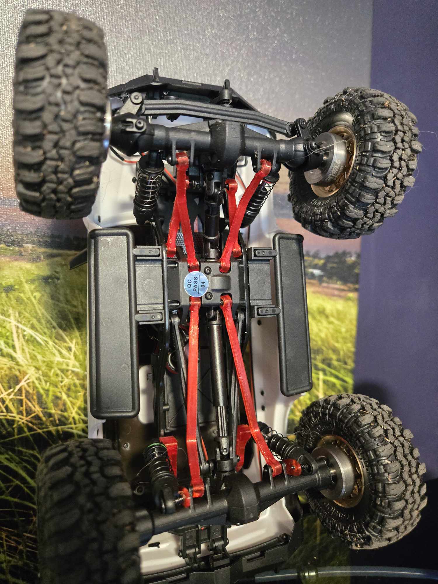 Bộ link tăng khoảng sáng gầm (high clearance) cho cả trước và sau cùng bộ chuyển đổi 4 link dành cho Axial SCX24 Lexus GX470 và Deadbolt (lưu ý: link sau sẽ không vừa với Deadbolt, vui lòng xem liên kết gốc để chọn bộ link sau phù hợp). Các link trước có hai phiên bản: tiêu chuẩn và kéo dài. Phiên bản kéo dài sẽ đẩy trục trước lên phía trước đáng kể nhằm cải thiện trục cơ sở ngắn, tuy nhiên bạn sẽ cần cắt gọt cản trước khá nhiều, đặc biệt nếu dùng lốp lớn. Cá nhân mình chọn dùng bản tiêu chuẩn để hạn chế phải cắt gọt xe. Các thanh 4 link trên cần một miếng pivot cup ở phía sau để gắn vào khung xe, và có thể bắt vít vào đế servo zin bằng các ốc ball studs có sẵn. Bạn có thể sử dụng các viên pivot balls zin hoặc tự in theo thiết kế này: https://www.thingiverse.com/thing:4701756.
