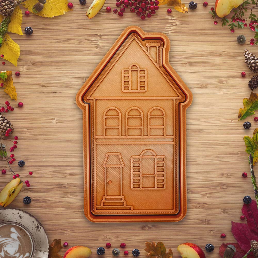 Sản phẩm này được thiết kế theo dạng khuôn dập kết hợp viền cắt, giúp bạn vừa có thể định hình khung ngôi nhà, vừa in họa tiết trang trí lên mặt bột bánh chỉ trong một lần nhấn. Bạn có thể sử dụng khuôn để làm bánh quy gừng, bánh quy bơ truyền thống, hoặc thậm chí là làm đồ chơi đất nặn cho bé yêu chơi đùa. Đây là phụ kiện 3D hoàn hảo cho những dịp tụ họp gia đình, giúp các bạn nhỏ có thể cùng tham gia làm bánh và khơi gợi sự sáng tạo trong bếp núc.