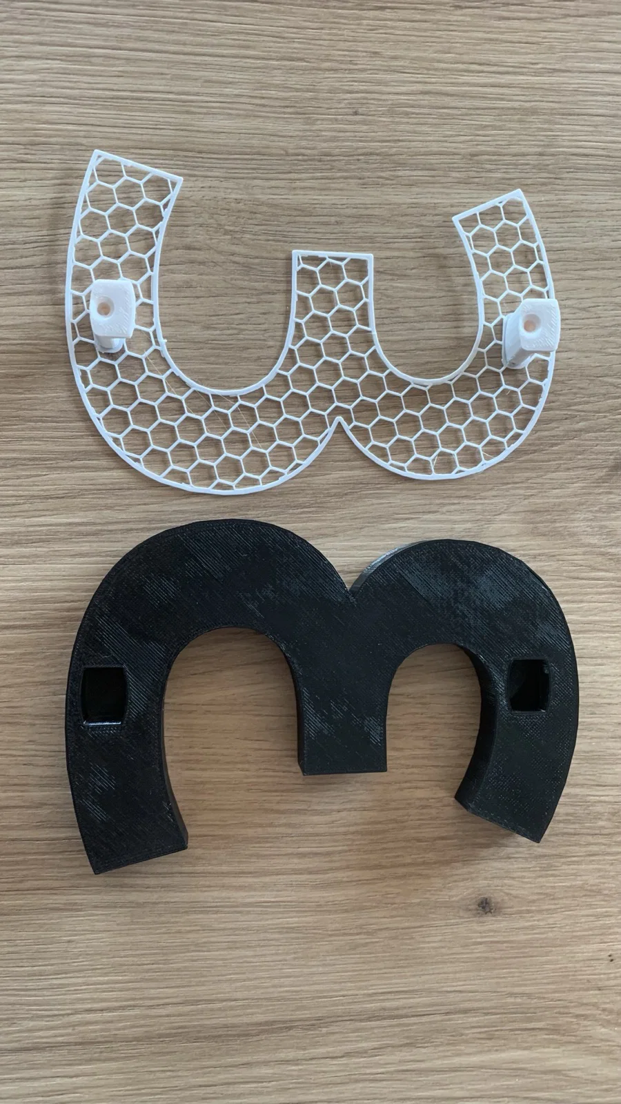 - In khuôn khoan với màu sắc mong muốn (ví dụ: màu hợp với bề mặt tường). Lưu ý cài đặt slicer khác nhau cho khuôn khoan, giá đỡ và số!