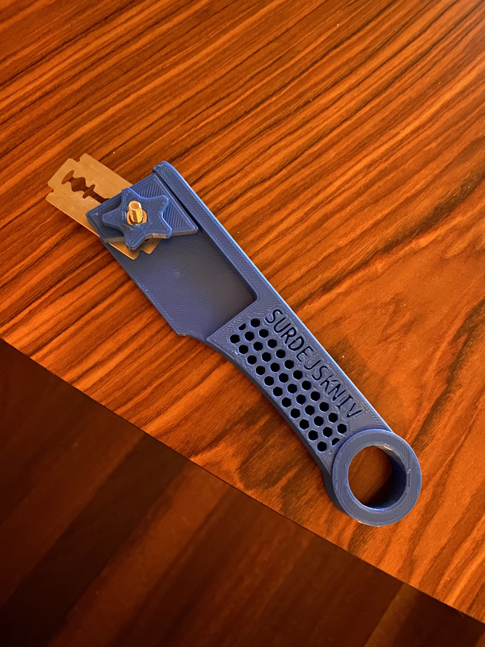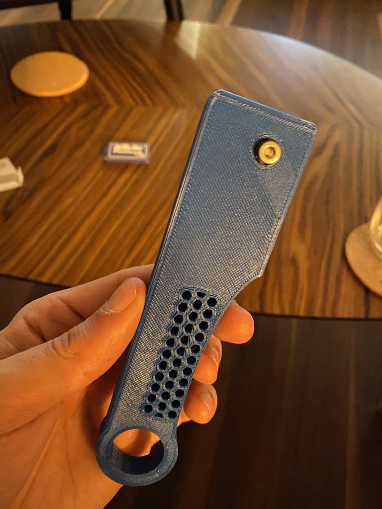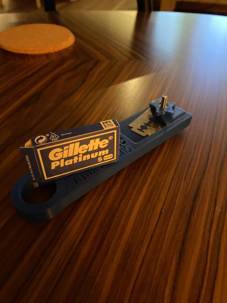 Em vợ mình cần một cái thiết kế để kẹp lưỡi lam dùng cho việc khứa bánh mì. Mình tạo ra cái này để vừa với lưỡi dao Gillette Platinum.
