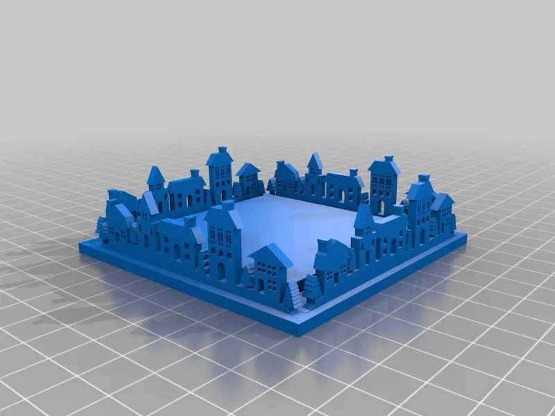 Thiết kế còn có phần đế với họa tiết ngôi làng nhỏ và nắp đậy trong suốt để dùng kèm với đèn LED dây. Nắp đậy là tùy chọn nếu bạn dùng nến điện tử bên trong, nhưng nó rất hữu ích để che đi phần dây đèn LED.