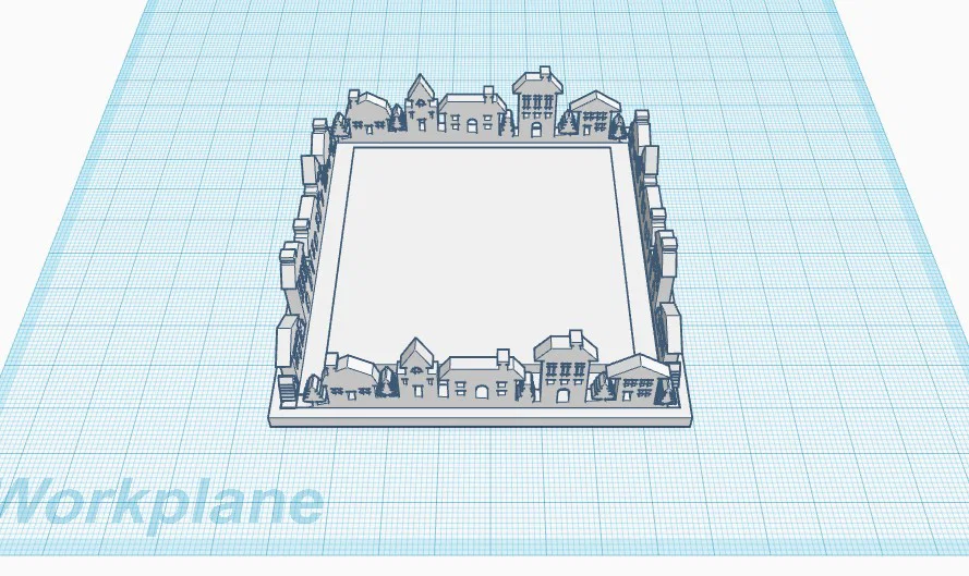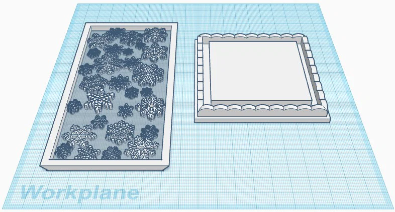 Tôi sử dụng Inkscape để chuyển đổi các tệp PNG bông tuyết sang SVG, sau đó đưa vào Tinkercad để tạo khối, điều chỉnh độ cao cho việc đổi màu và vát góc cạnh. Phần đế tôi kết hợp các hình khối cơ bản và họa tiết ngôi làng nhỏ.