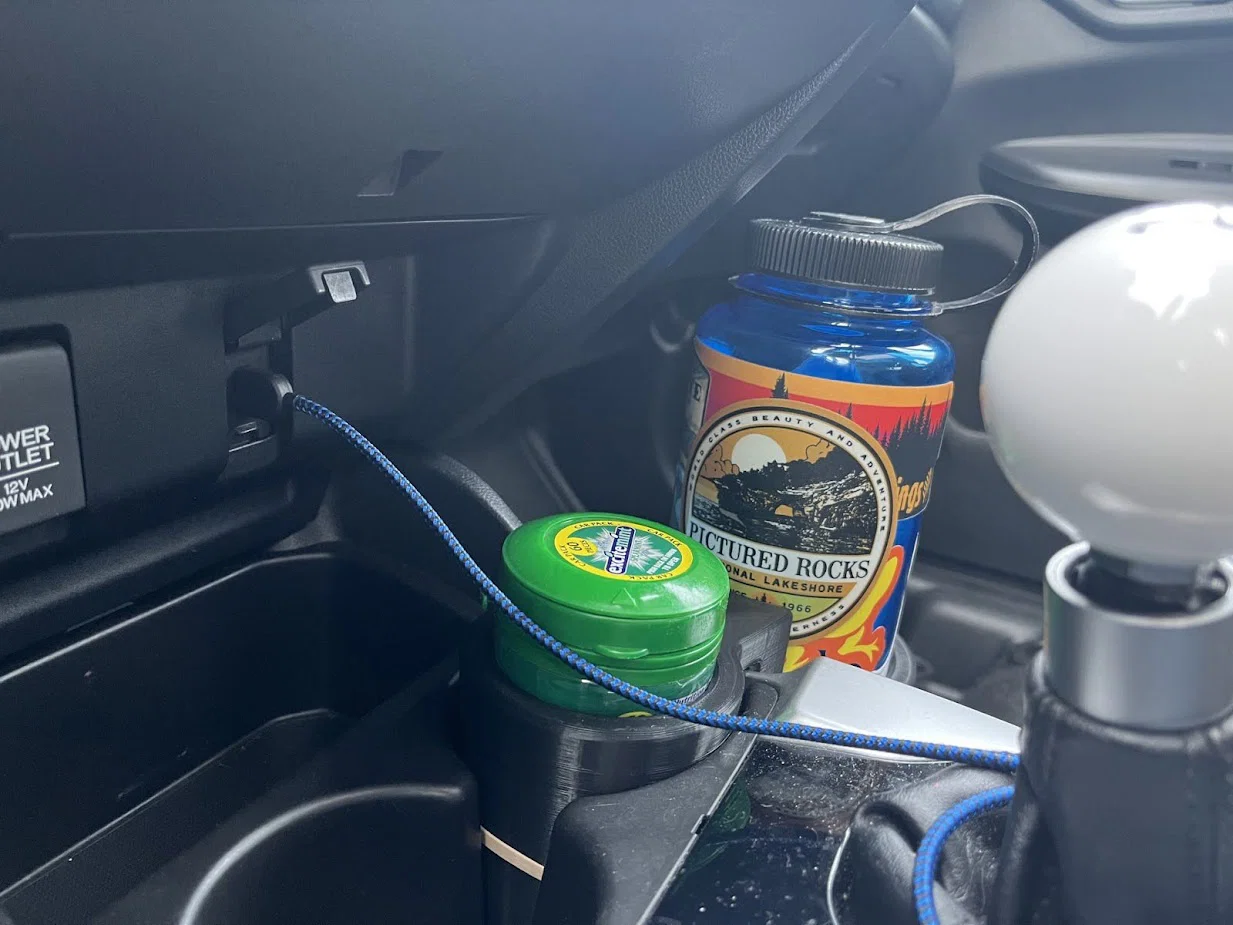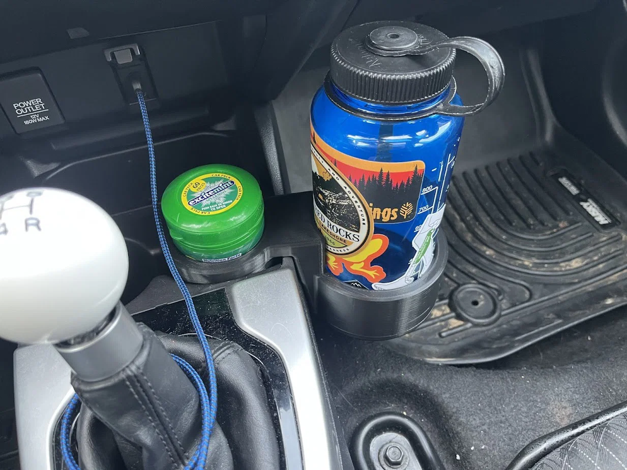 Bình nước 32oz như Nalgene hay Hydroflask (đường kính khoảng 94mm) không thể bỏ vừa khay để cốc zin. Thiết kế này giúp bạn có thêm chỗ để cốc tiện lợi hơn cho chiếc Honda Fit của mình.