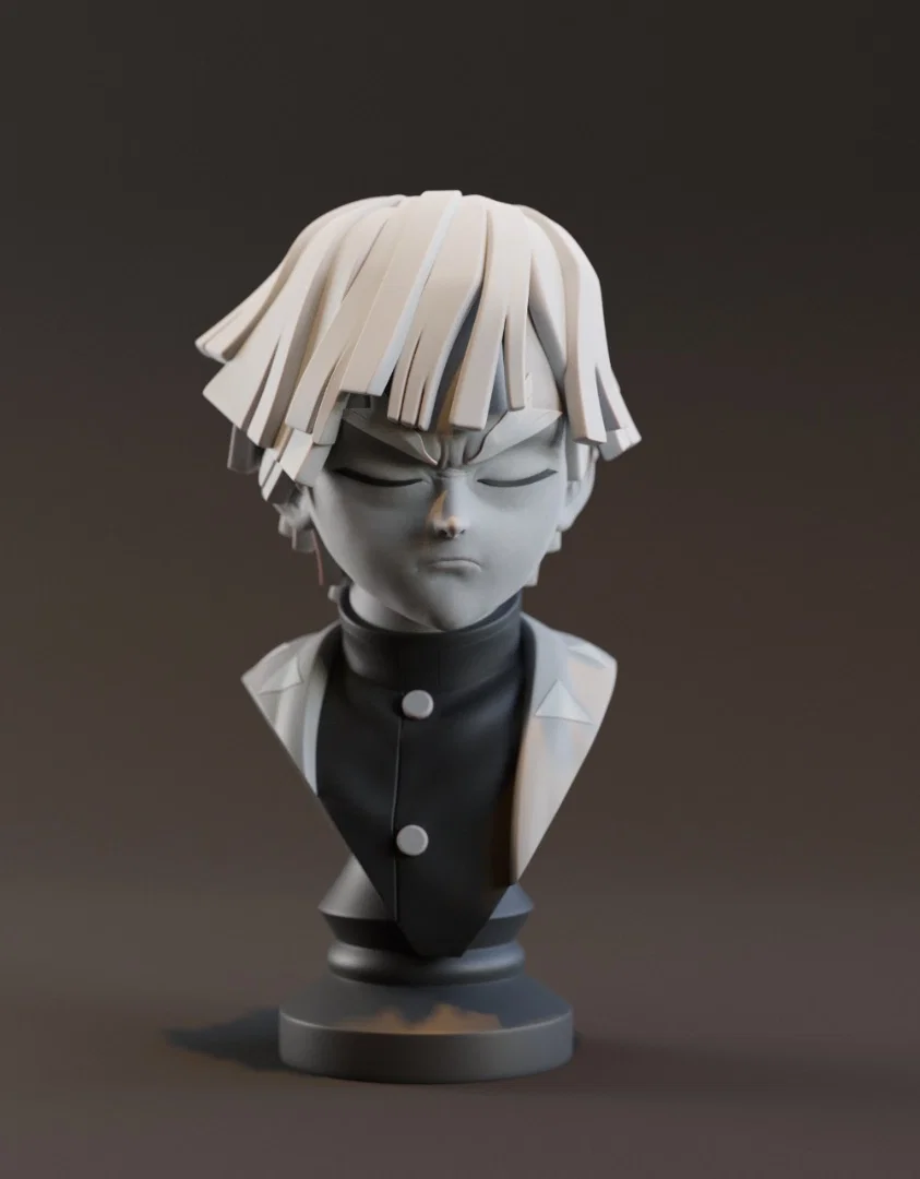 Mô hình bust 3D tinh xảo của Zenitsu Agatsuma từ Demon Slayer. Sản phẩm tái hiện hoàn hảo kiểu tóc và trang phục đặc trưng, là món quà tuyệt vời dành cho người hâm mộ anime và các tín đồ in 3D.