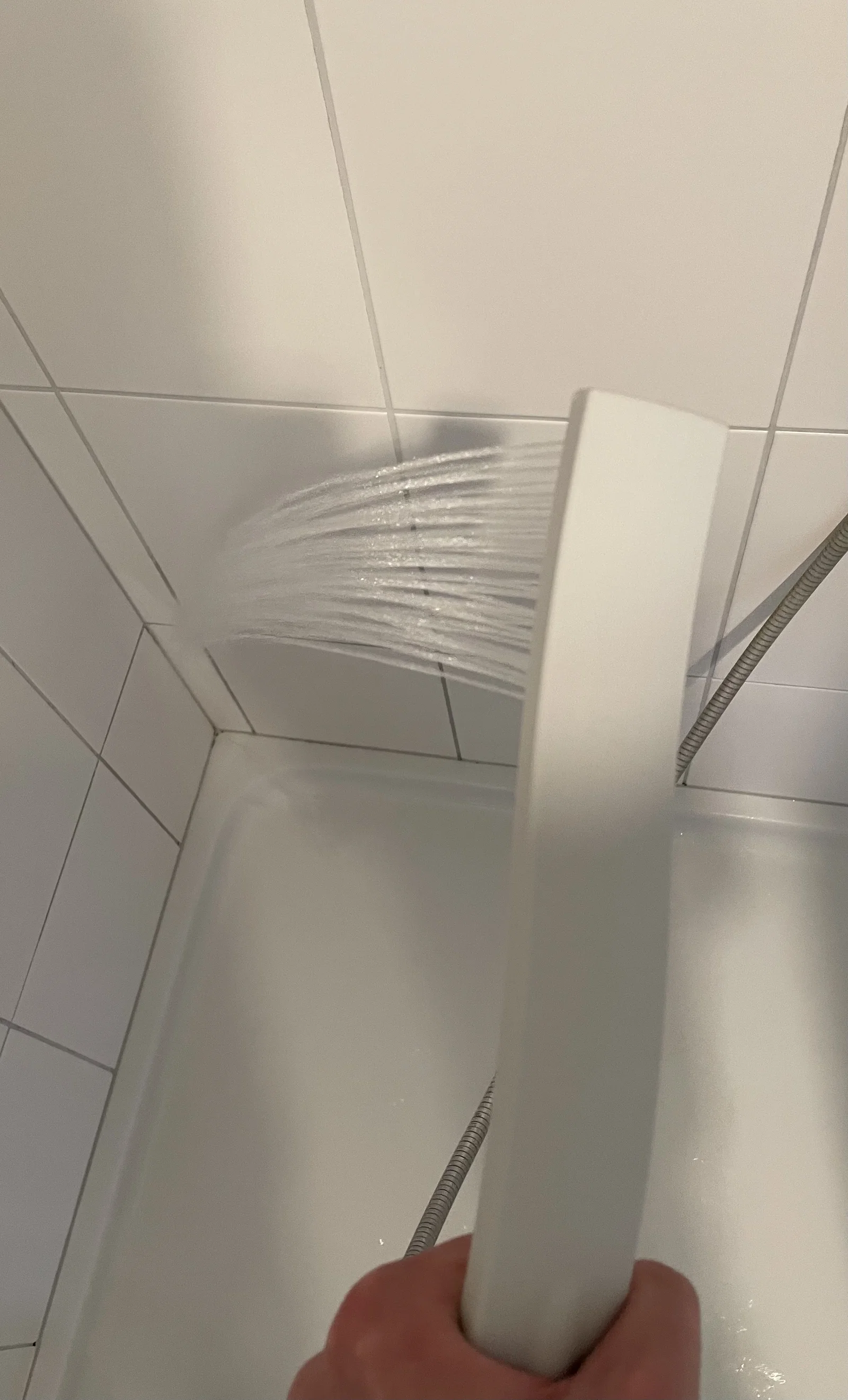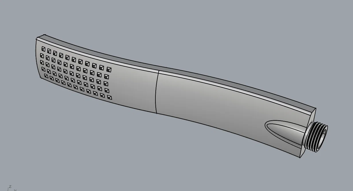 Do nguồn nước ở khu vực mình khá nhiều vôi, nên vòi hoa sen rất nhanh bị bám cặn trông rất mất thẩm mỹ. Các loại chất tẩy rửa mạnh cũng làm hư hỏng đầu vòi hoa sen nữa. Vì mình không muốn ra cửa hàng vật liệu xây dựng và cũng không ưng ý mấy kiểu thiết kế bán sẵn, nên mình đã tự thiết kế một mẫu đầu vòi hoa sen theo phong cách tối giản. Mình đã sử dụng đầu vòi in bằng nhựa PLA được 2 tháng rồi và trộm vía nó vẫn chịu được các loại chất tẩy rửa. Linh kiện này chỉ cần dùng support cho phần ren 1/2" thôi nhé.