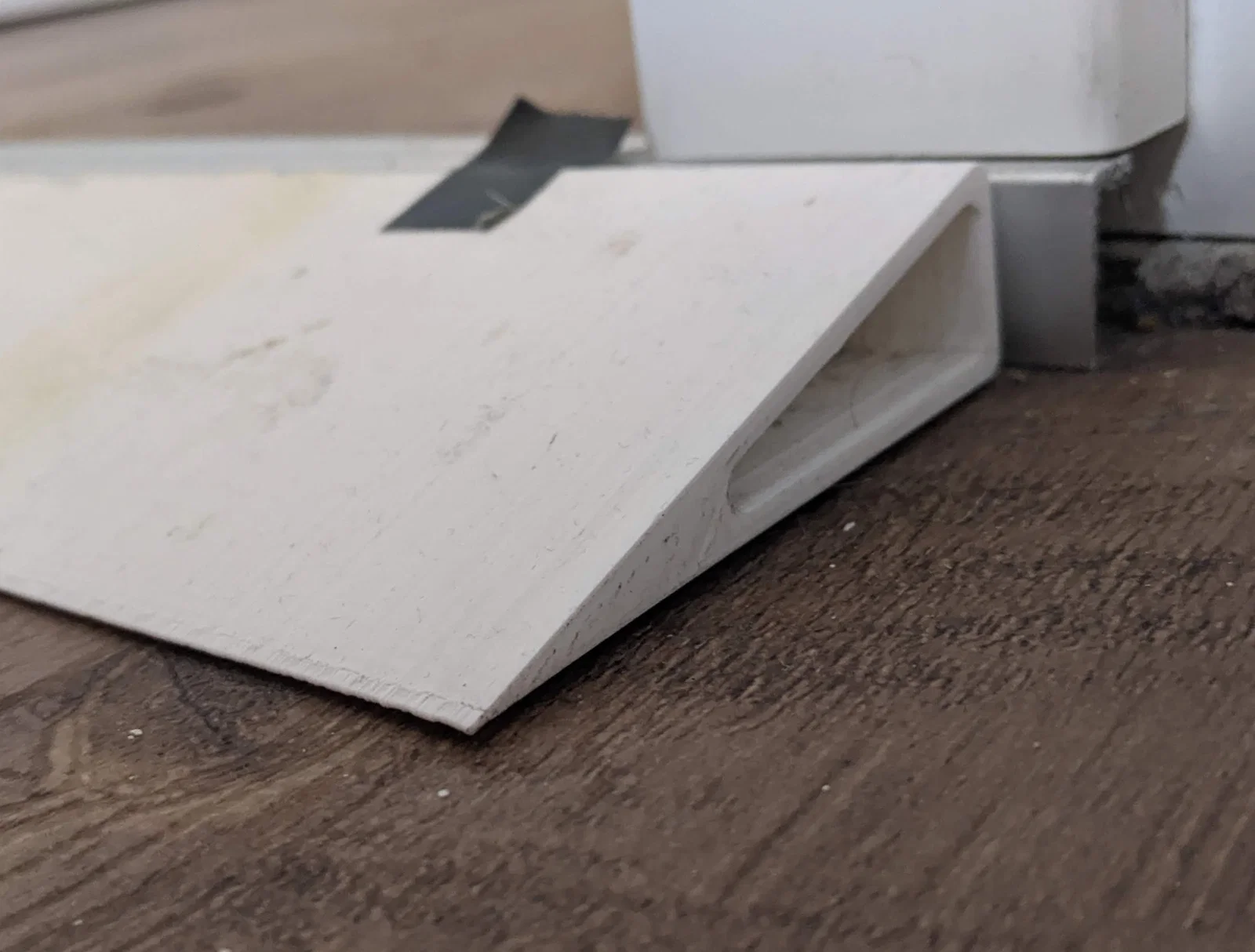 Sản phẩm này có cấu trúc hình tam giác rỗng bên trong giúp tối ưu hóa lượng vật liệu in, đảm bảo tính thẩm mỹ gọn gàng nhưng vẫn đủ cứng cáp để chịu tải trọng từ robot. Tùy thuộc vào chiều cao thực tế của gờ cửa tại nhà, bạn hoàn toàn có thể điều chỉnh tỉ lệ (scale) trên phần mềm cắt lớp (slicer) trước khi in để đạt độ cao khớp nhất. Đây là một món đồ nhỏ nhưng cực kỳ hữu ích cho không gian sống thông minh.