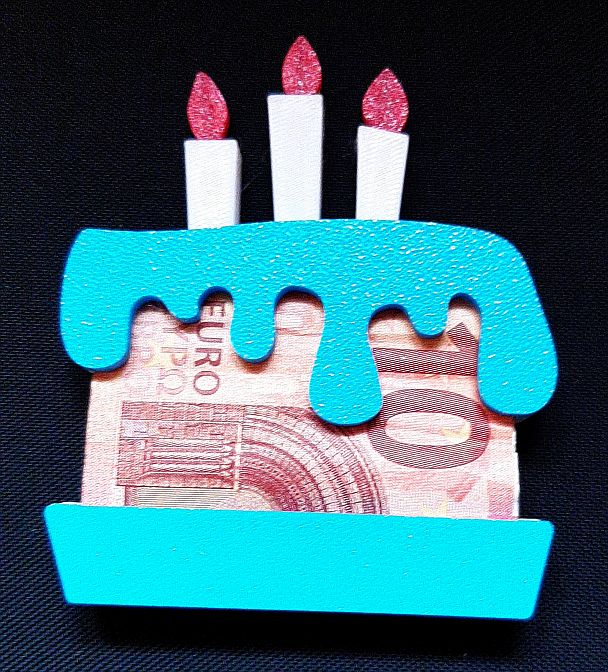 Thiết kế này được tối ưu hóa đặc biệt cho kích thước của tờ tiền 10 Euro, tạo hình thành một chiếc bánh kem có phủ sốt và các ngọn nến phía trên. Khi in xong, bạn chỉ cần cuộn nhẹ tờ tiền và đặt vào khe hở ở giữa phần thân bánh, tạo nên hiệu ứng thị giác như thể chiếc bánh được làm từ chính những tờ tiền đó. Sản phẩm không chỉ là món quà mà còn là kỷ niệm đáng nhớ dành cho người nhận trong ngày đặc biệt của họ.