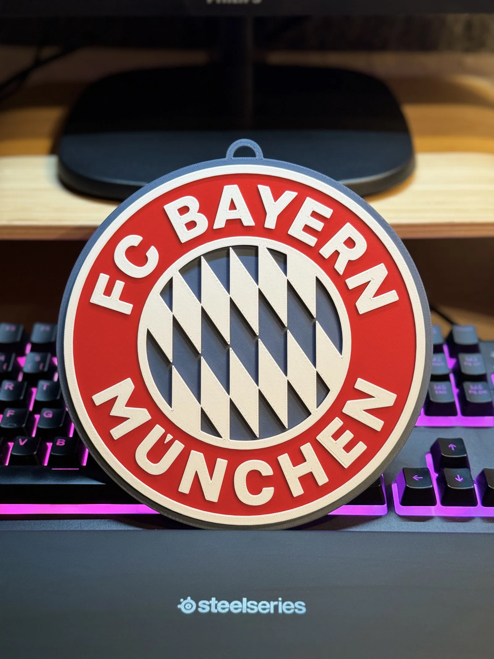 Bản sao chuẩn xác logo FC Bayern Munich, được tối ưu hóa cho việc in nhiều màu bằng cách thay đổi lớp (không cần MMU).