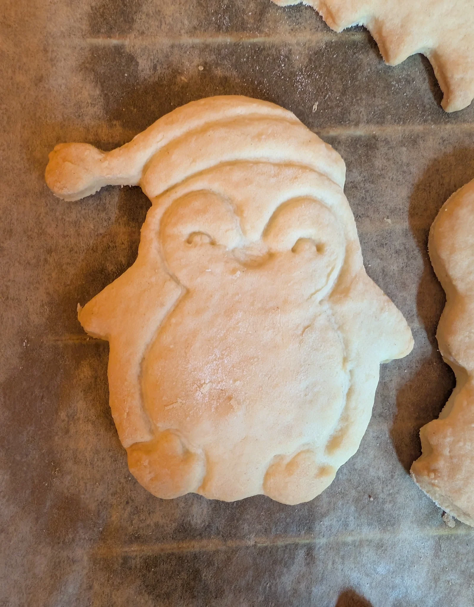 - Tips làm bánh: Hãy nhúng khuôn vào một ít bột mì khô trước mỗi lần cắt để đảm bảo bột bánh không bị dính vào các góc cạnh nhỏ của hình chim cánh cụt.