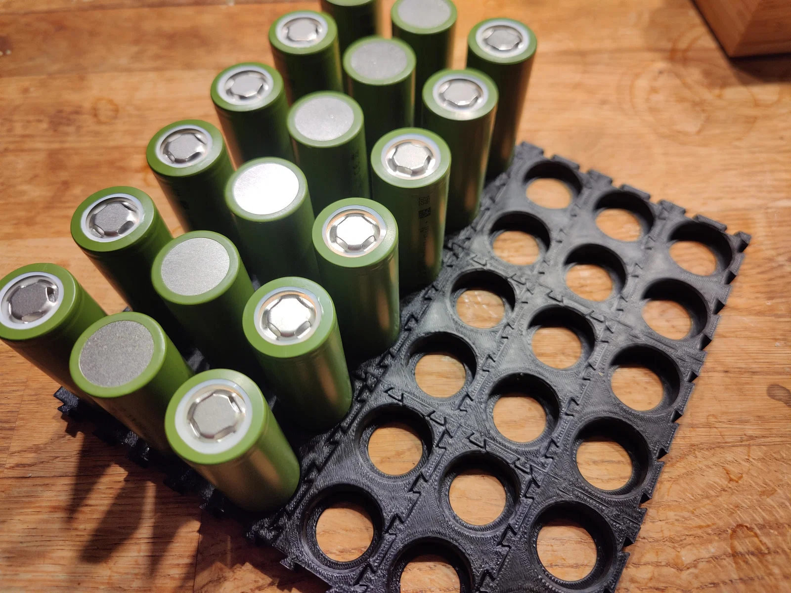 Bạn có thể mua sẵn các loại đầu nối này, nhưng tự in thường sẽ nhanh hơn nhiều. Có cả phiên bản hai cell và ba cell cho bạn lựa chọn. Bạn có thể kết nối bao nhiêu tùy thích để tạo thành khối pin với kích thước bất kỳ, ngay cả khi nó lớn hơn diện tích bàn in của bạn.