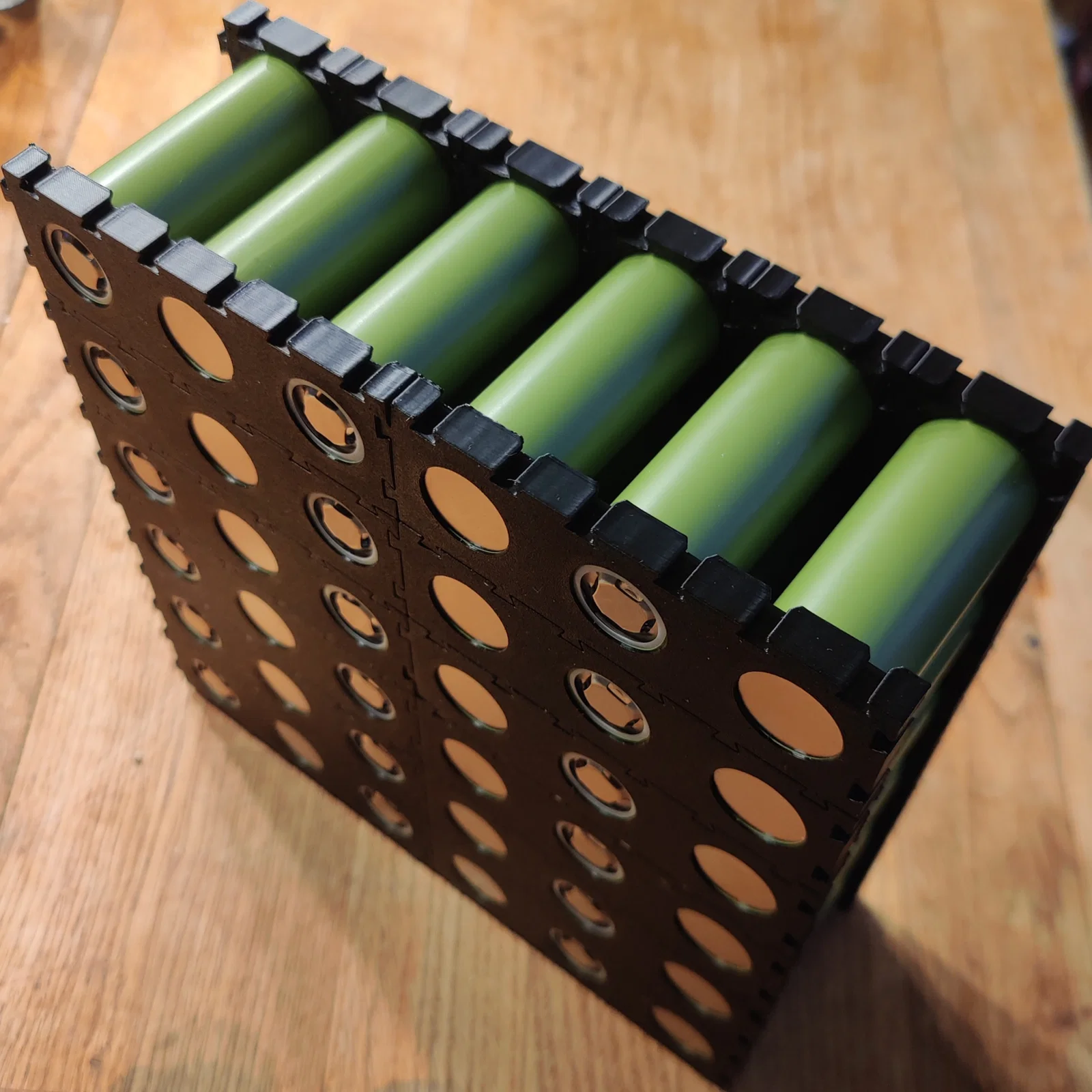 Mình đã in mẫu này với 2 lớp vỏ (perimeters) và 10% infill bằng nhựa ABS. Bạn cũng có thể dùng PLA hoặc PETG đều ổn cả. Bản thân mình đã dùng nó để lắp một khối pin LFP/LiFePO4 6p6s với dung lượng 500 Wh.