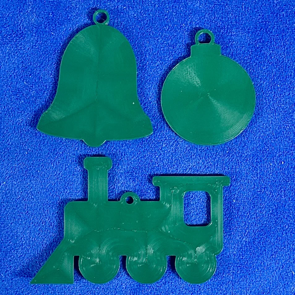 Điểm đặc biệt của bộ mô hình này nằm ở tính tùy biến cao, cho phép bạn dễ dàng thêm các chi tiết như logo, thông điệp hoặc năm kỷ niệm (như ví dụ "Illinois Railway Museum" và "2024" trong hình). Nhờ thiết kế dạng phẳng, bạn có thể dễ dàng in nhiều màu sắc khác nhau hoặc sử dụng kỹ thuật in thay đổi màu theo lớp (color swap) để tạo nên những sản phẩm bắt mắt, nổi bật. Độ dày tiêu chuẩn khoảng 2mm giúp mô hình vừa đủ chắc chắn để treo lên cây, lại vừa nhẹ nhàng, tinh tế và không làm nặng cành cây thông của bạn.
