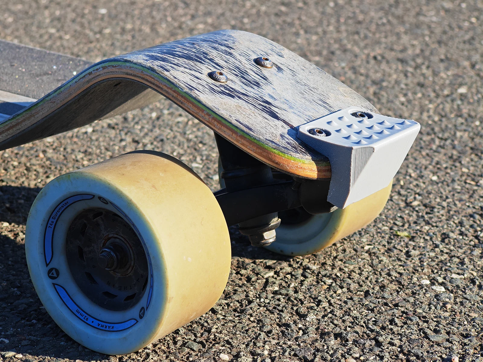 Việc lắp đặt phụ kiện này cực kỳ đơn giản và linh hoạt, bạn có thể dễ dàng gắn kèm với các tấm anti-sink plate (chống lún) hiện có mà không gặp trở ngại gì. Sản phẩm khi hoàn thiện tạo ra một lớp đệm vững chắc, giúp phân tán lực tác động, kéo dài tuổi thọ đáng kể cho chiếc longboard yêu quý của bạn. Qua trải nghiệm thực tế hơn 6 tháng sử dụng liên tục, ngay cả với vật liệu PLA tiêu chuẩn, phụ kiện này vẫn duy trì được độ bền hoàn hảo, không hề bị nứt vỡ, chỉ có một chút hao mòn bề mặt do ma sát, chứng minh được hiệu quả đầu tư lâu dài.