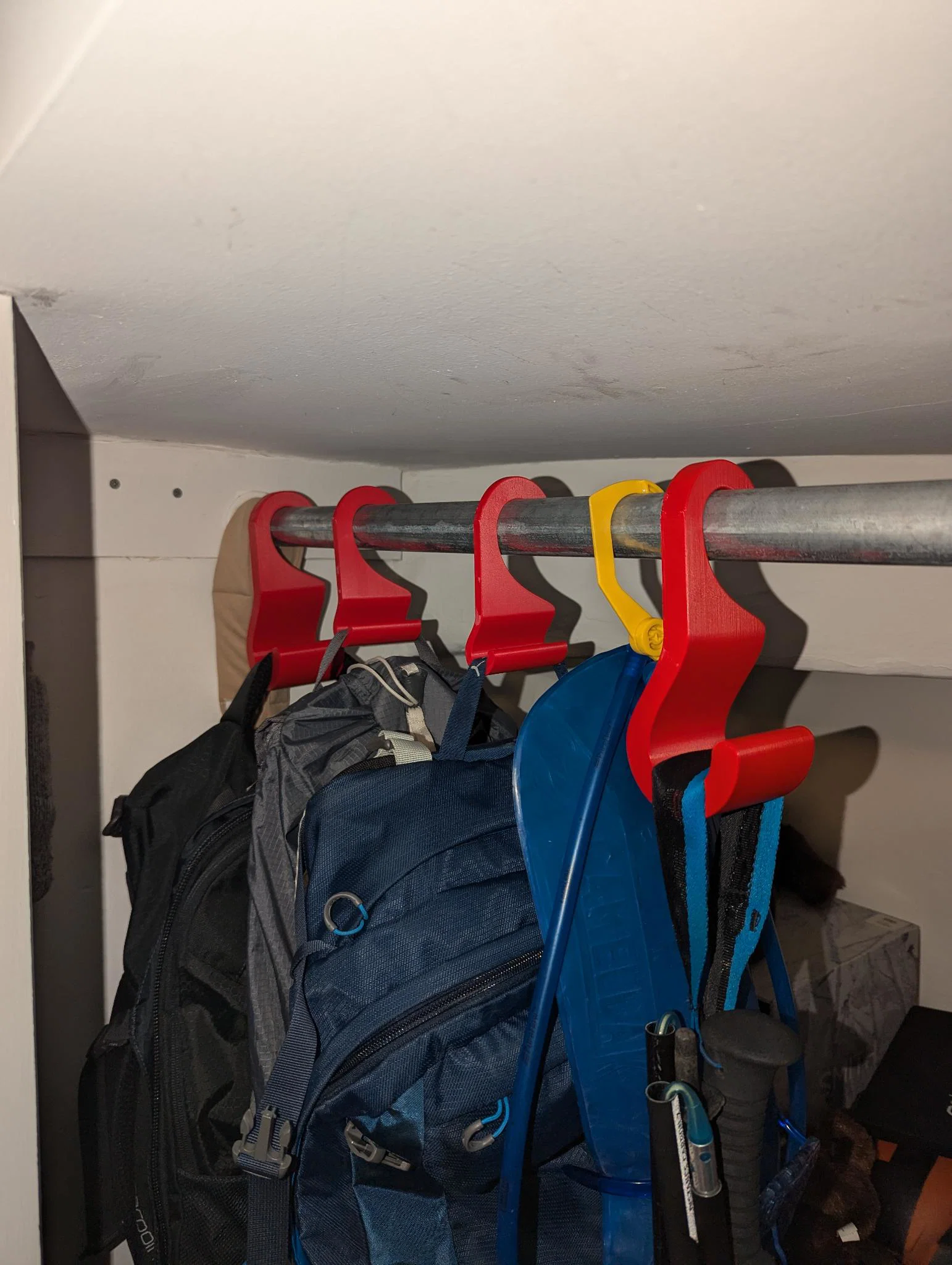 Tôi muốn tìm một cách để treo tất cả đống balo của mình lên, nhưng các phương án ngoài kia dường như chỉ được thiết kế cho những loại thanh treo hoặc balo cụ thể. Kích thước thì không khớp với nhu cầu của tôi, hoặc nếu có CAD thì tôi lại phải sửa đổi từng thông số cho mỗi chiếc móc khác nhau, rất bất tiện.