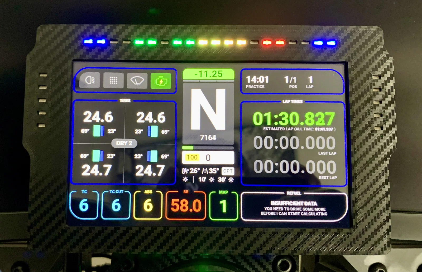 Phần màn hình và đèn LED có thể điều khiển qua SimHub hoặc phần mềm tương tự. Mình cực kỳ khuyến khích dùng Lovely Dashboard và các profile LED của Daniel Newman Racing (lúc viết bài này thì chưa có bản 5-20-5 nhưng anh ấy có hứa sẽ sớm ra mắt). Hãy ủng hộ các dự án này nếu bạn thấy chúng hữu ích nhé!
