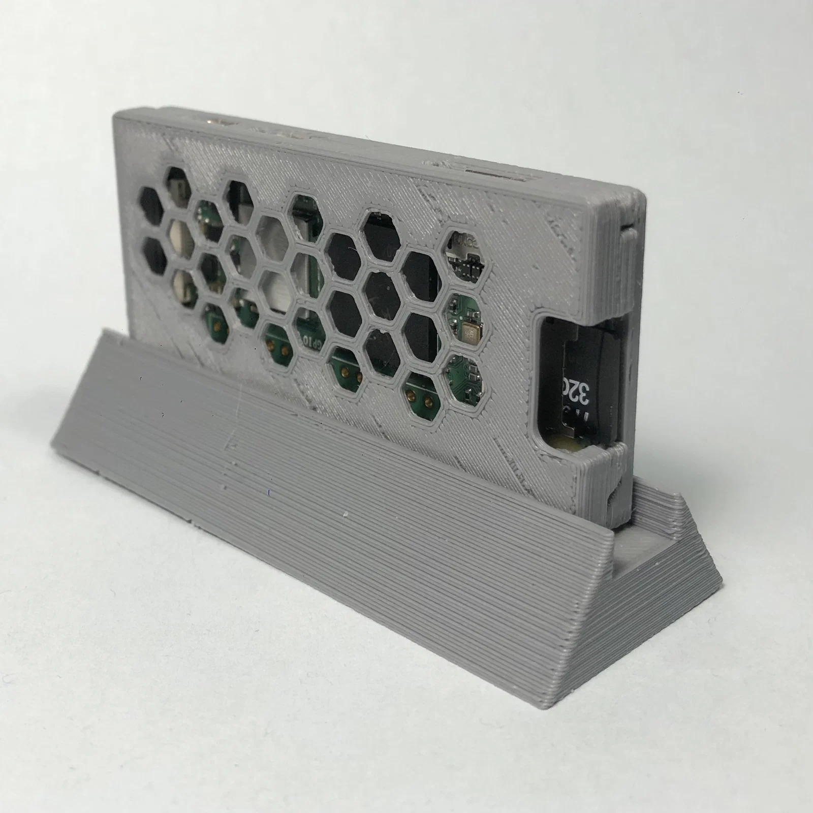 Cái vỏ case này dựa trên mẫu Raspberry Pi Zero W Snap-In Case là bản Remix của Bigjeffrey. Mình đã chỉnh sửa lại và thiết kế thêm một cái chân đế cho nó. Chân đế V1 sử dụng khớp nối ma sát (friction fitted), còn bản V2 thì mình chưa kịp test. Nếu bạn muốn gắn thêm tản nhiệt (heatsink), mình khuyên bạn nên lắp sau khi đã cho RPi vào trong vỏ case để tránh tình trạng khó đóng vỏ. Mình đã thử nghiệm với cả RPi Zero và Zero 2, cả hai đều lắp rất vừa vặn. Nếu bạn định dùng Camera Raspberry Pi (V. 1.3, V. 2 hoặc HQ) thì cũng sẽ dùng được bình thường, dù mình mới chỉ test thực tế trên bản V. 1.3 thôi. Khi in, mình để thông số chiều cao lớp in (layer height) là 0.3mm cho chân đế và 0.2mm cho vỏ case.