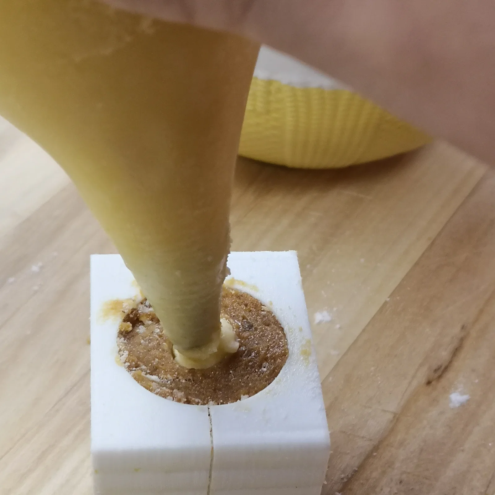 Khuôn nhựa chuyên dụng để tạo hình các loại bánh không cần nướng như bánh Tổ Ong hoặc bánh Včelie úliky. Kích thước nhỏ gọn với chiều cao 4cm và đường kính đế 3cm, được thiết kế vừa vặn để đặt lên bánh quy tròn, giúp việc làm bánh trở nên dễ dàng.