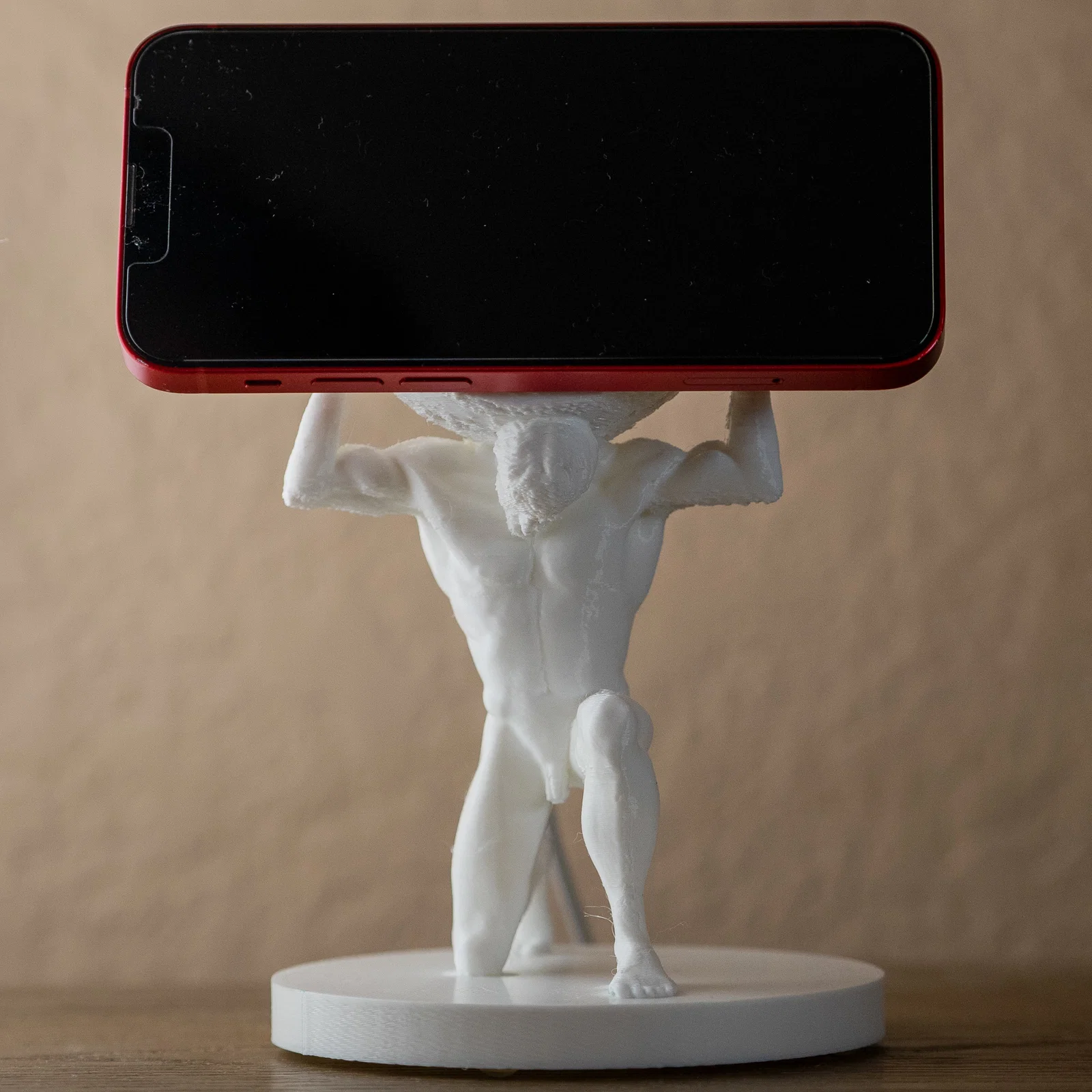 Việc sở hữu chiếc đế 3D này không chỉ giúp không gian làm việc gọn gàng hơn mà còn tạo điểm nhấn đầy cá tính. Bạn có thể đặt máy theo chiều ngang để xem phim, họp trực tuyến hoặc xem video giải trí một cách cực kỳ thoải mái. Cấu trúc mô hình được chia làm hai phần chính bao gồm tượng thần Atlas và phần đế tròn vững chắc, giúp đảm bảo sự cân bằng tuyệt đối khi đặt điện thoại lên trên. Đây thực sự là một món quà tuyệt vời dành cho những ai đam mê công nghệ và yêu thích sự sáng tạo từ công nghệ in 3D.