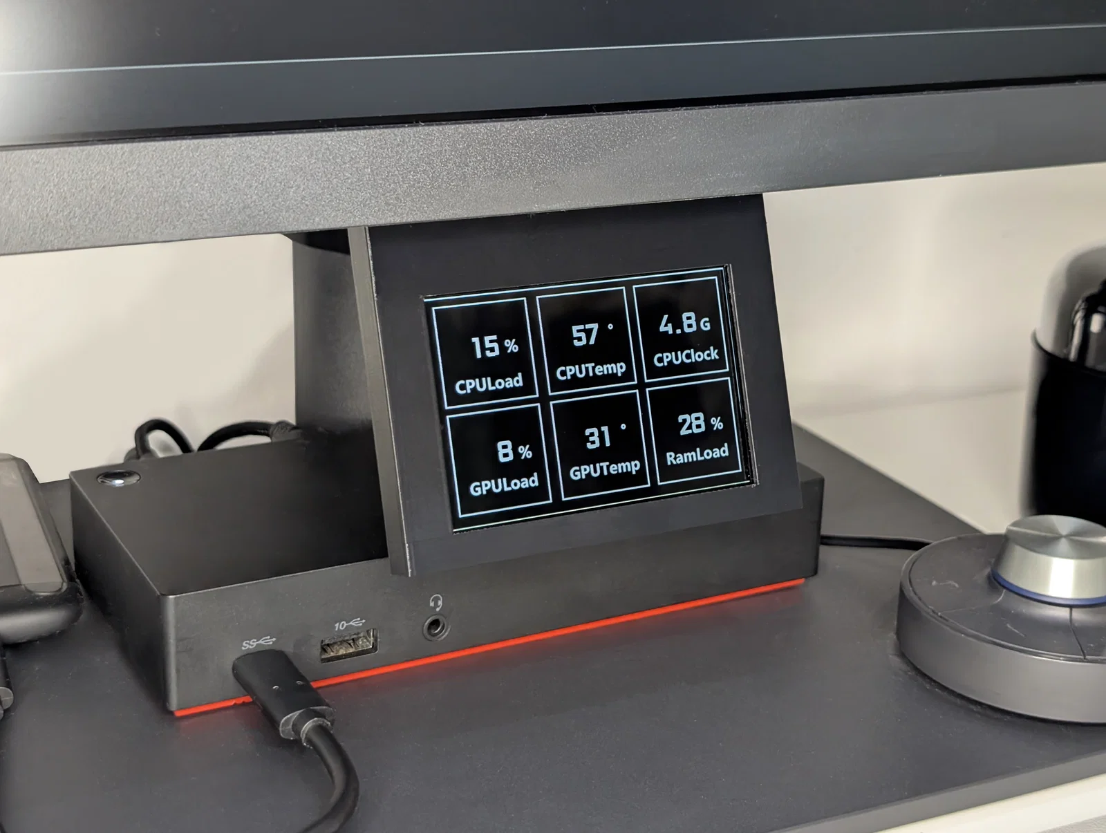 Chân đỡ màn hình phụ 3.5-inch để theo dõi thông số PC. Tay đỡ gắn chắc vào đế màn hình chính, chỉnh được độ sâu và góc nghiêng, giúp đặt màn hình đúng tầm nhìn và ổn định khi sử dụng.