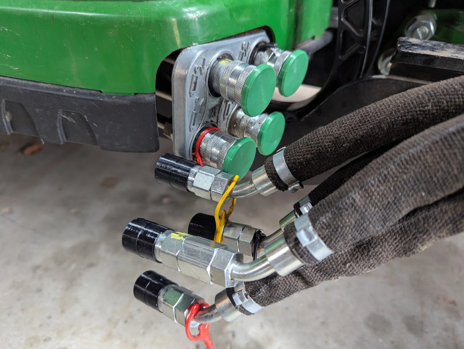 Bộ nắp đậy chống bụi cho đầu nối thủy lực nhanh trên máy kéo John Deere Subcompact. Thiết kế thay thế cho nắp zin dễ hỏng, tương thích chuẩn ISO 5675 1/4 inch. Khuyên dùng nhựa TPU cho nắp cái và ABS/ASA cho nút đực để đạt độ bền tối ưu.