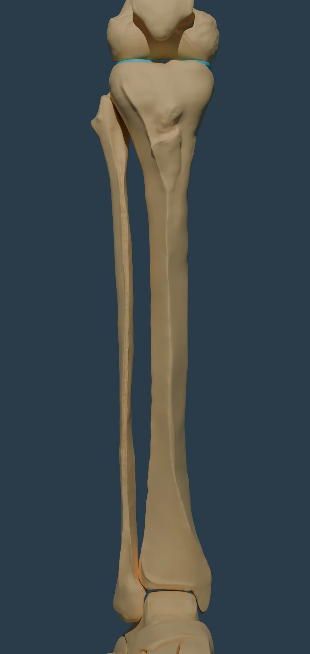 Mô hình xương chày (tibia) và xương mác (fibula) độ phân giải cao, được điêu khắc trong Blender dựa trên trí nhớ và tài liệu tham khảo từ Gray's Anatomy và Netter's Anatomy. Góp ý lỗi giải phẫu/tỷ lệ ở bình luận.