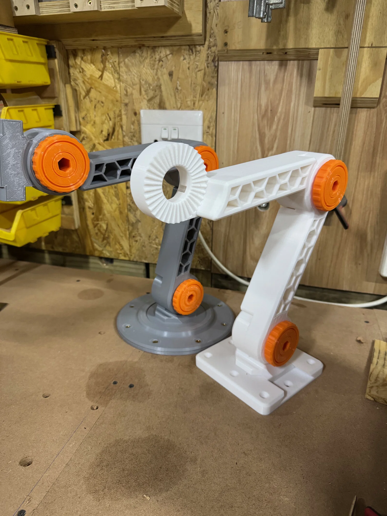 Bản remix của đế gắn nguyên bản, cho phép lắp đế lớn hơn để tăng độ vững và mở rộng tầm chuyển động. Gồm 2 kiểu: đế nêm trượt ra/vào và đế xoay 360°, đều có lỗ vít âm để bắt lên workbench.