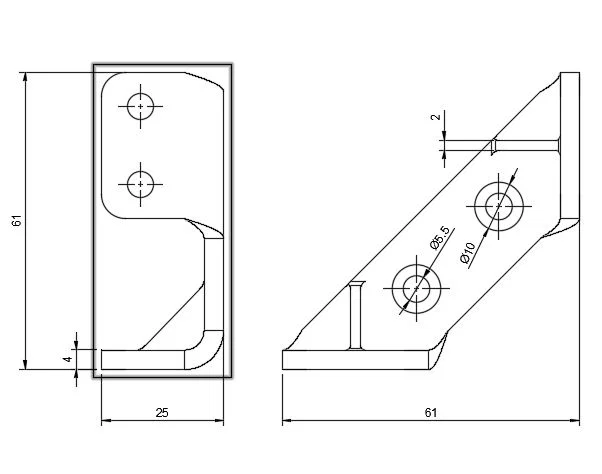 Ke góc 45° có gân tăng cứng cho kệ (45° angle with reinforcing ribs)
