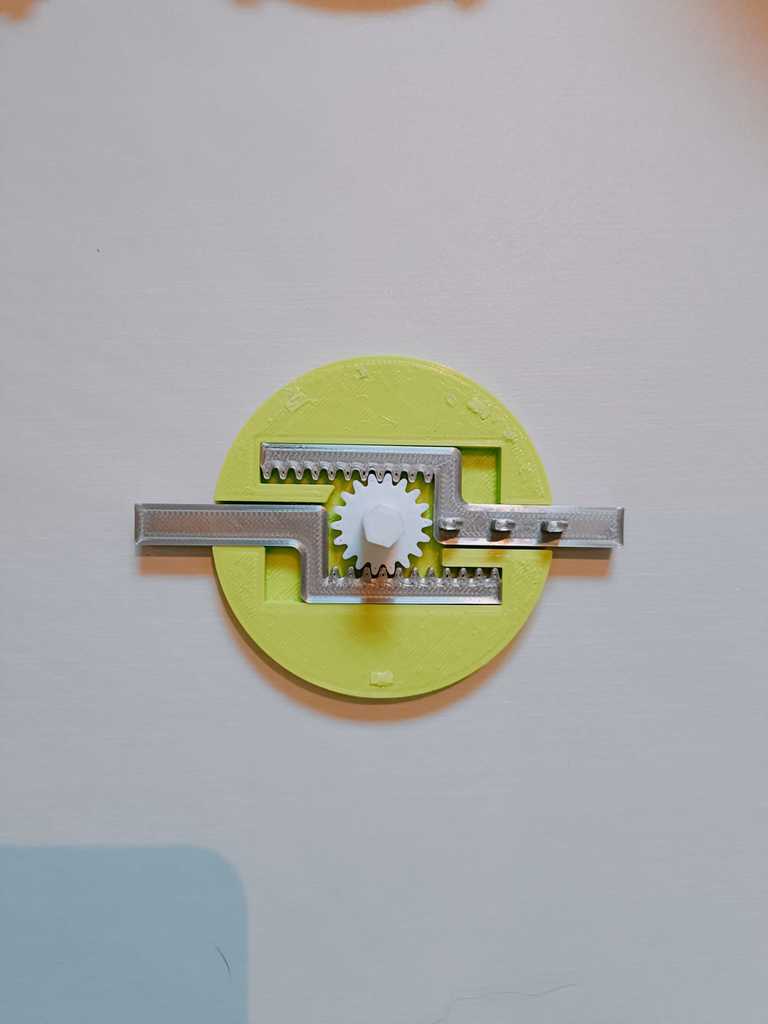 - Đặt Spur Gear và 2 Rack Locks vào trong Latch Housing. Đảm bảo cả hai rack có cùng độ thò ra, tức là hoặc cả hai đều thò hết ra hoặc cả hai đều thụt hết vào (xem ảnh).
