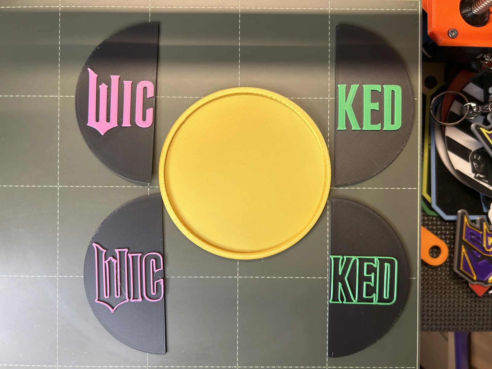 Wicked Coaster in theo từng phần để dễ đổi màu theo layer: tách hồng và xanh riêng rồi lắp hai nửa vào đế. Có 2 bản (chữ fill và chữ outline), kèm thêm bản nguyên khối cho hệ vật liệu tự động.
