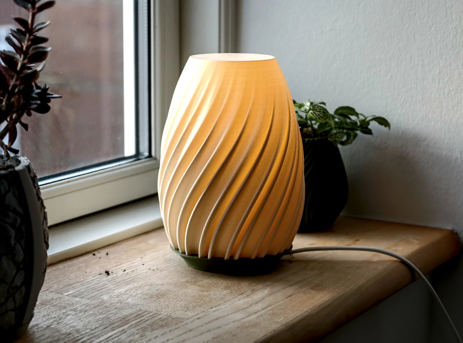 Lamp V8 là mẫu đèn dạng “trứng” cong đơn giản. Holder phù hợp đui bóng cao 5,75 cm, đường kính 4 cm; lỗ luồn dây khoảng 0,6–0,7 cm. Khuyến nghị in lampshade ở chế độ vasemode và đặt vòng tròn xuống đáy.