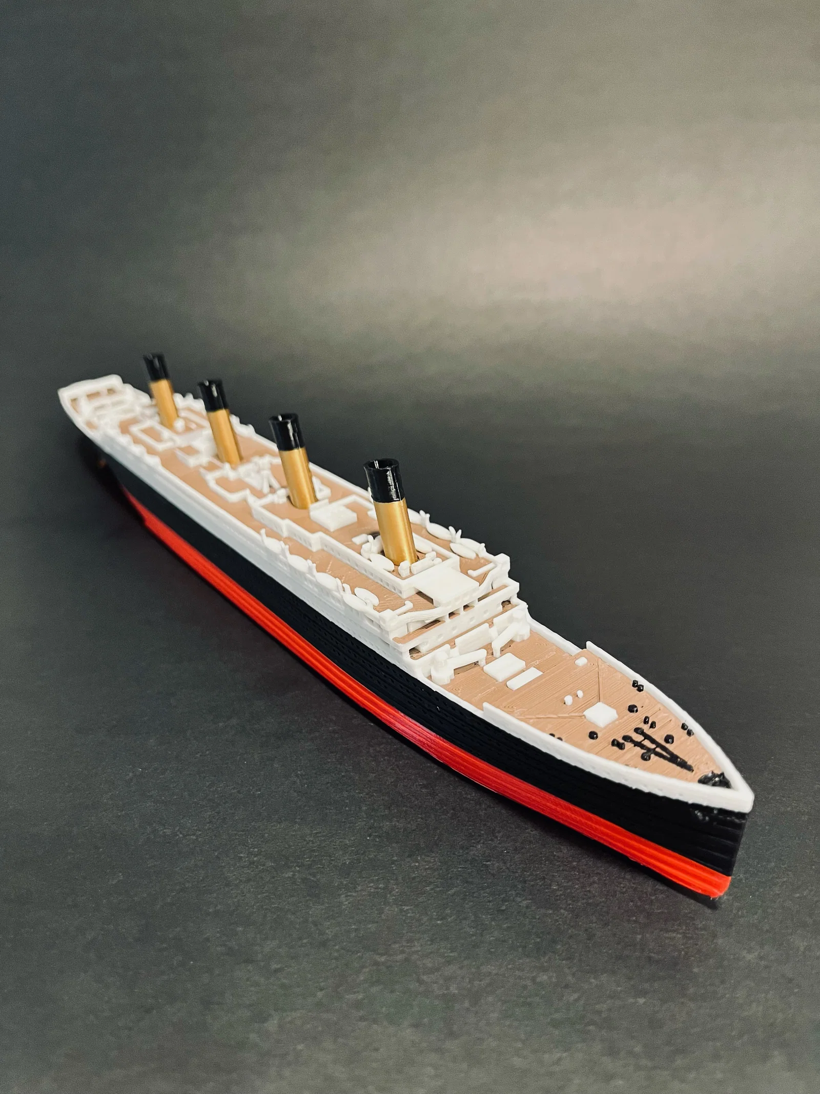 Mẫu 3D Titanic tỉ lệ 1/1000 chân thực, đăng từ 2017. Có thể in 5 màu với máy multi extruder hoặc MMU/AMS (single extruder). Tác giả bán phần tô màu & slicing, không bán file; không được bán file hay bản in theo licence gốc.