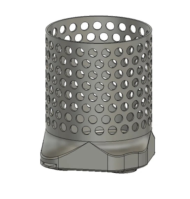 UPDATE: V2 đã đóng phần khe lại để mấy muỗng nhỏ không bị lọt vào. Phần chân đế cũng được thiết kế lại để tăng độ ổn định.