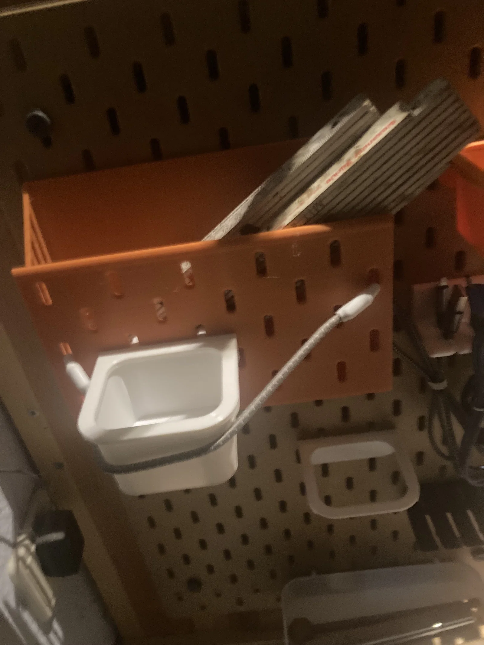 Nếu bạn đang sở hữu bảng treo tường IKEA Skadis và muốn tối ưu hóa không gian làm việc một cách gọn gàng, thì chiếc giỏ Skadis-Basket-o-Skadis chính là giải pháp tuyệt vời mà bạn không nên bỏ qua. Với thiết kế thông minh, sản phẩm này cung cấp một ngăn chứa rộng rãi, đủ lớn để đặt các thiết bị như máy tính bảng hoặc các công cụ cầm tay dài mà vẫn đảm bảo độ chắc chắn khi treo trên bảng.