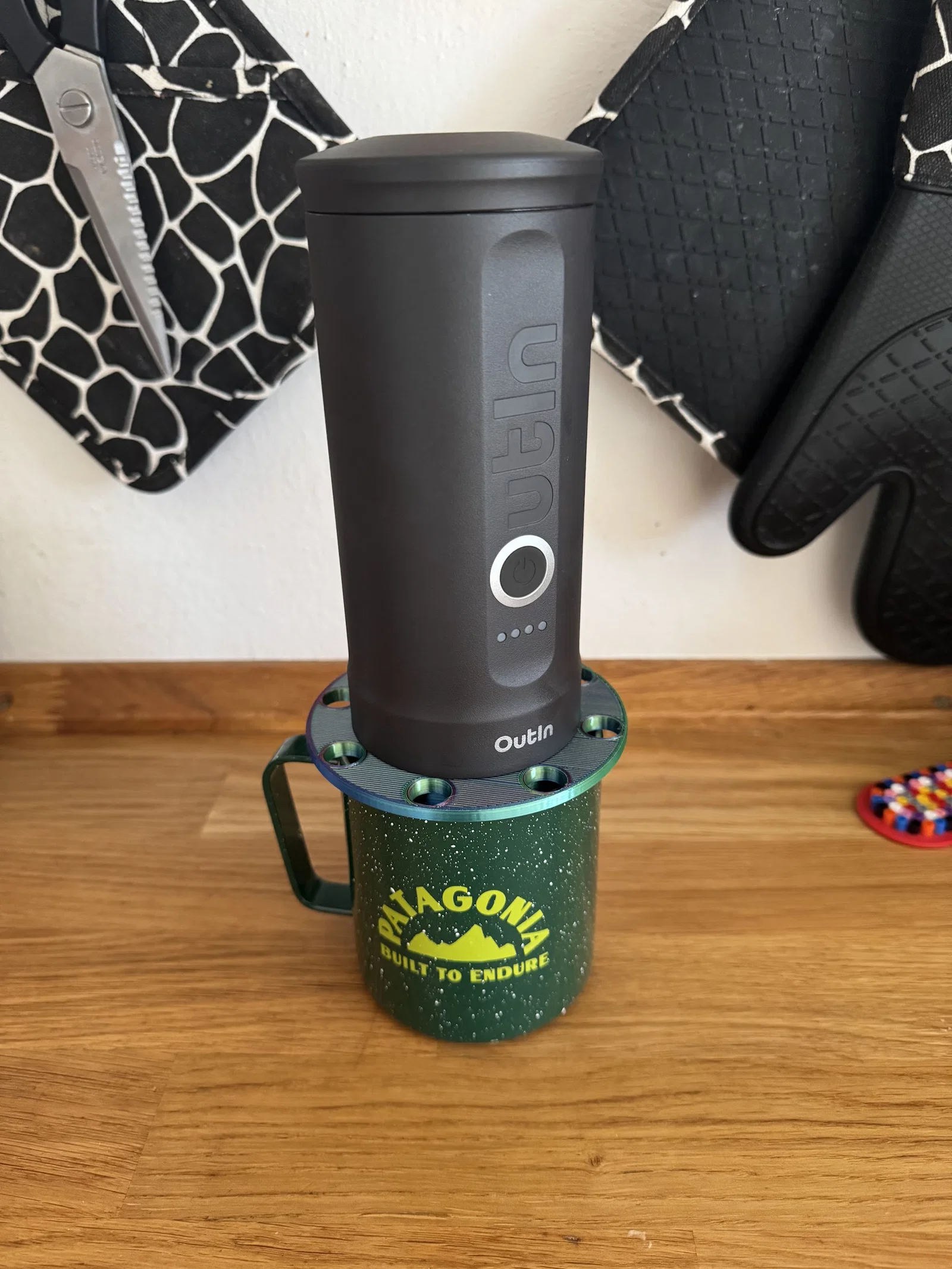 Bạn là một tín đồ của cà phê pha máy khi đi cắm trại và đang sở hữu chiếc máy Outin Nano gọn nhẹ? Chắc hẳn bạn đã từng gặp tình huống khó xử khi muốn pha cà phê trực tiếp vào chiếc tách yêu thích nhưng miệng tách lại không vừa vặn với máy. Đây là lý do chiếc đế chuyển đổi (adapter) này ra đời, giúp bạn cố định chiếc Outin Nano một cách chắc chắn trên miệng cốc, đảm bảo quá trình chiết xuất cà phê diễn ra suôn sẻ mà không lo bị đổ hay lệch.