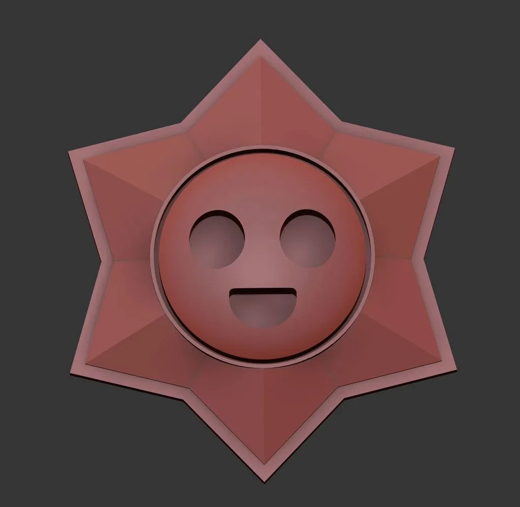 Mẫu biểu tượng Starr Drop trong Brawl Stars, dựng bằng 3ds Max để làm đồ sưu tầm. Không cần setting in đặc biệt; bản preview in layer height 0.12mm, 15% gyroid infill. Bản hai màu đổi filament sau layer 17.