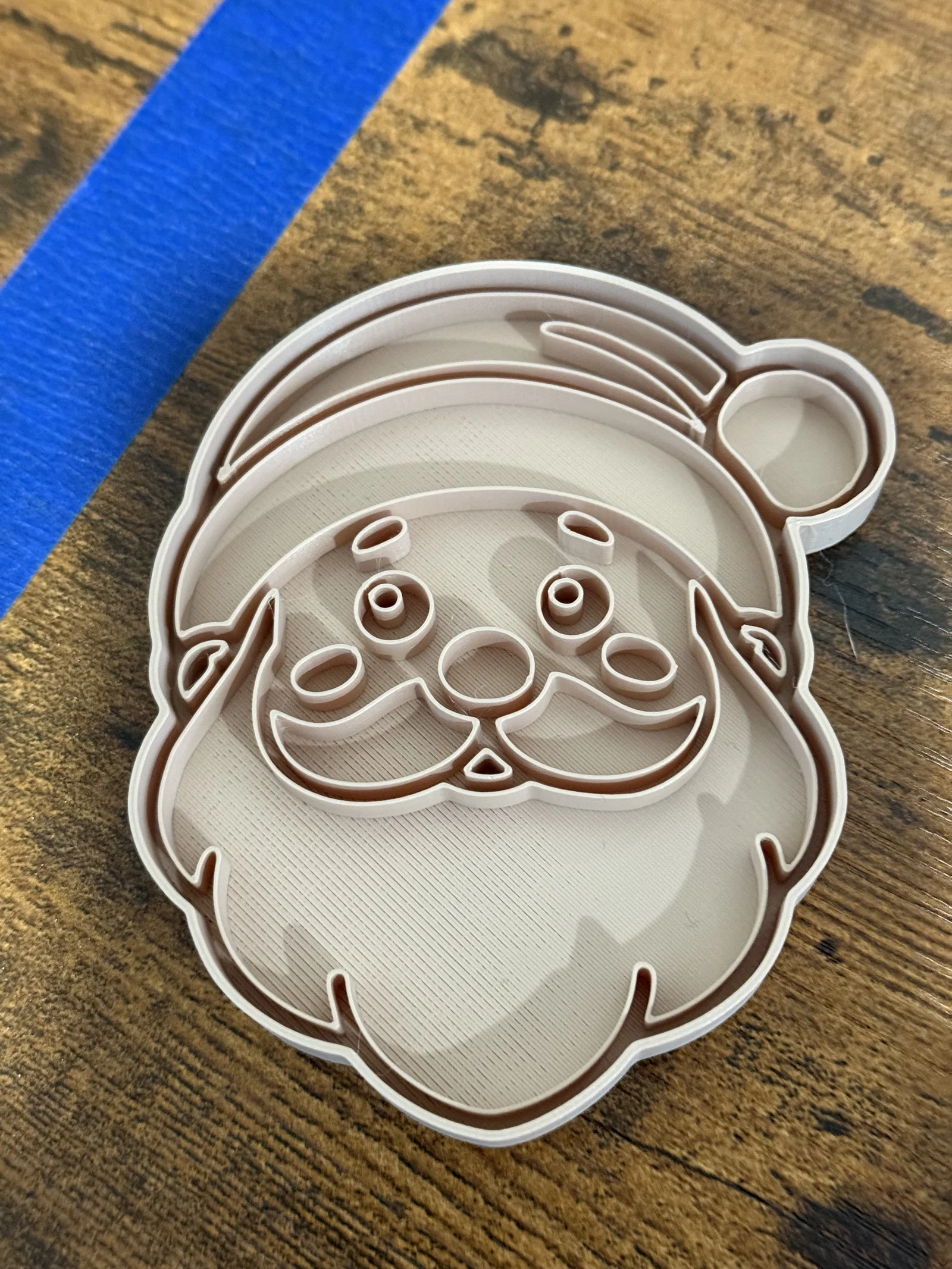Khuôn cắt bánh quy hình Ông Già Noel, dựa trên thiết kế coaster Ông Già Noel của mình. File mẫu đang ở tỉ lệ khoảng 50% vì 100% sẽ rất lớn; bạn có thể scale linh hoạt từ 50% đến 100%.