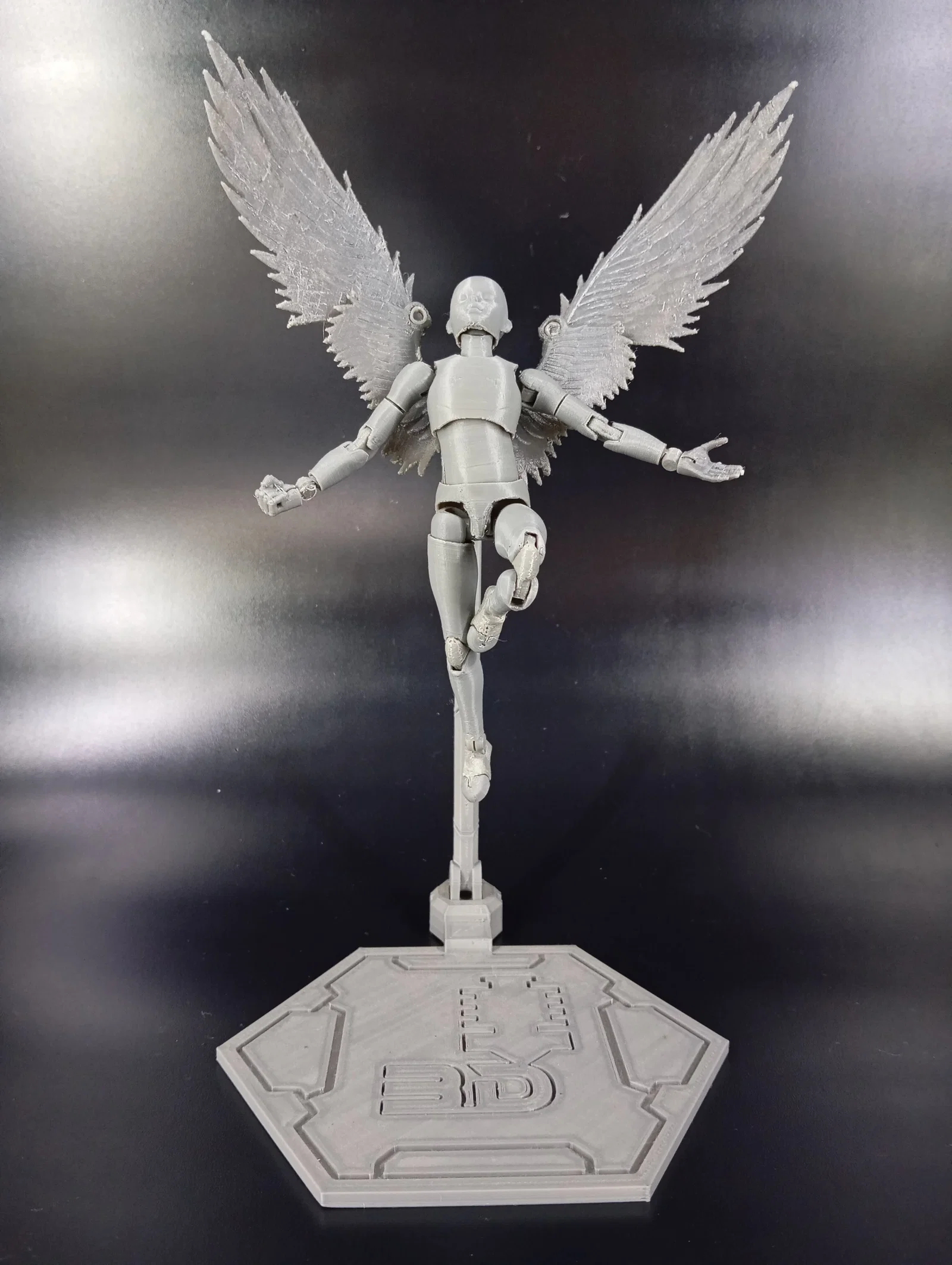 Noku là action figure khớp linh hoạt: phần khớp in bằng TPU, phần còn lại in PETG, cao khoảng 15 cm. Thiết kế điểm khớp tương tự ADAM 0 nên có thể dùng chung standbase, nhưng không có phụ kiện.