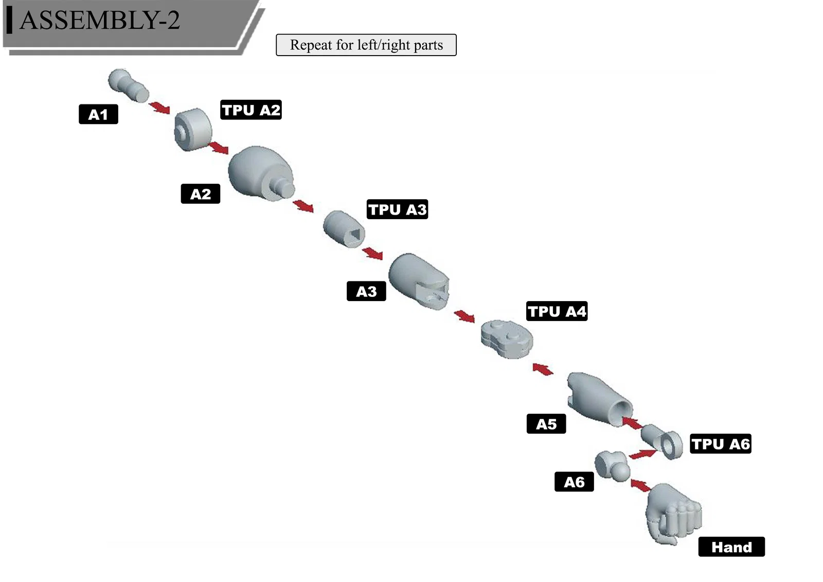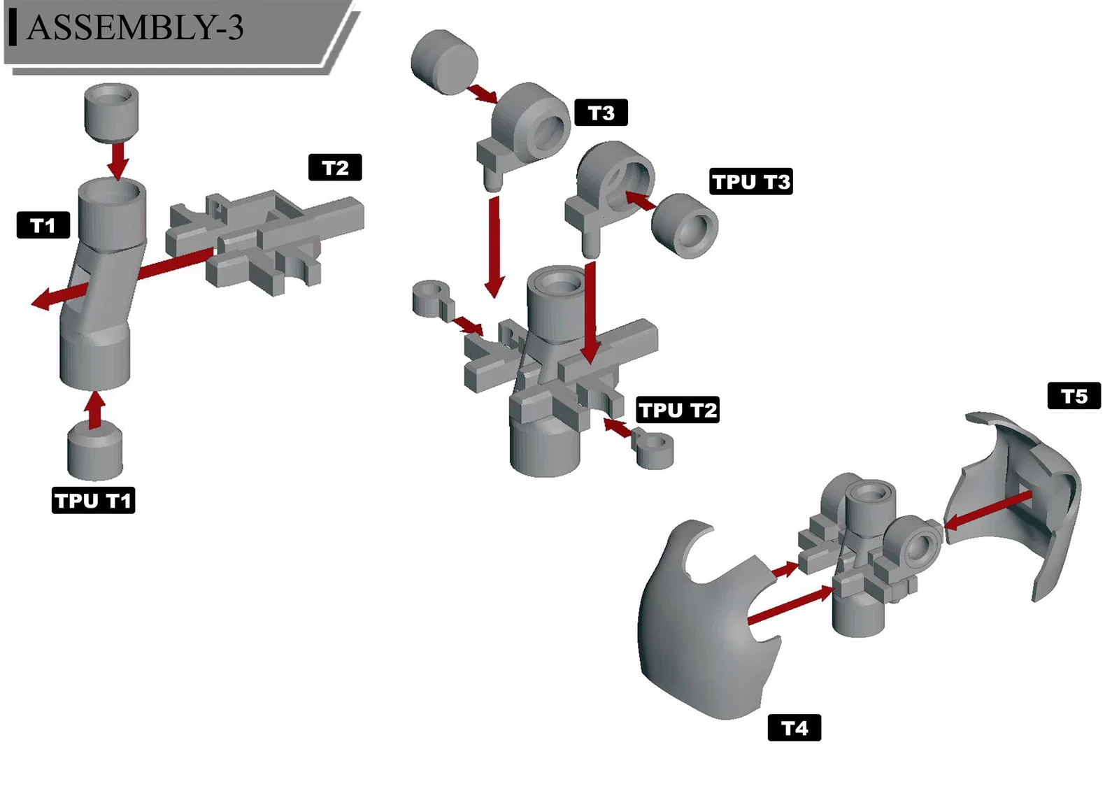 Mẫu này dùng vật liệu TPU cho phần khớp, còn lại được in bằng PETG. Mình dùng filament TPU và PETG của Sunlu. Điểm khớp giống với ADAM 0 nên cũng có thể dùng chung standbase. Tuy nhiên mẫu này không có phụ kiện kèm theo.