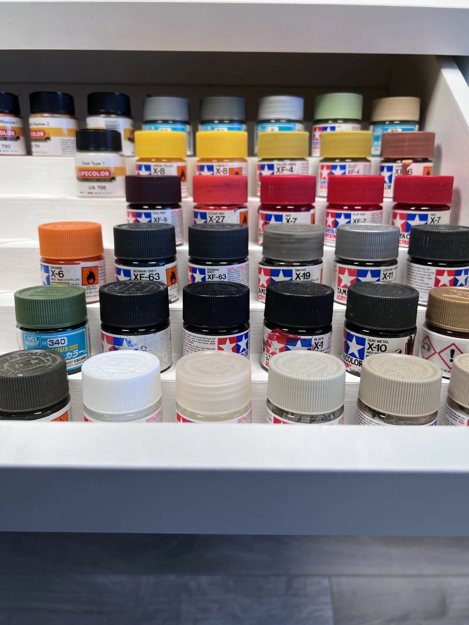 Khay chia ngăn cho ngăn kéo IKEA Micke để sắp xếp sơn, tương thích với sơn Tamiya/Vallejo/AK/Lifecolor/MR.Hobby.