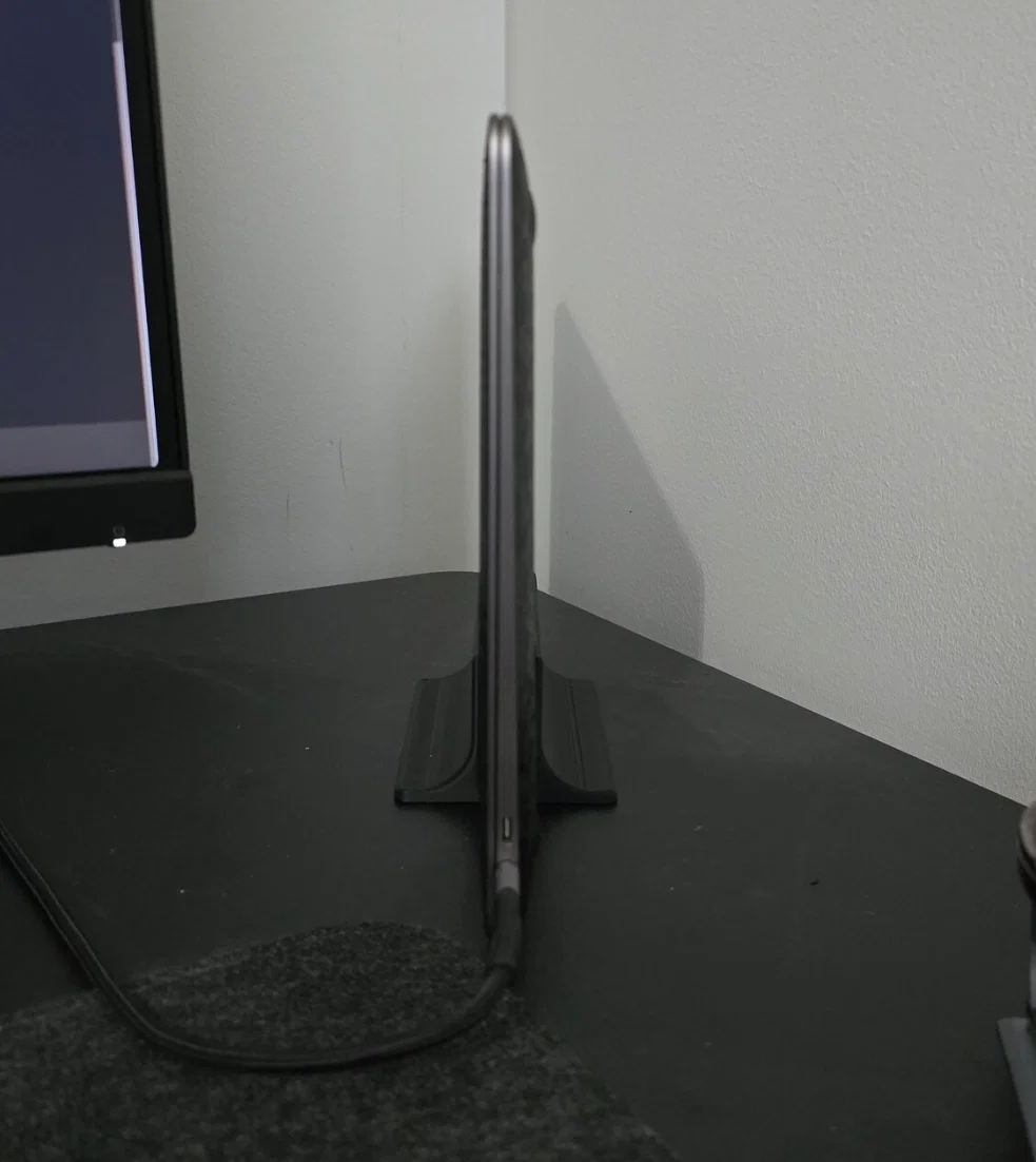 Bạn đang tìm cách để tối ưu hóa không gian làm việc trên bàn máy tính của mình? Chiếc giá đỡ dựng đứng (vertical stand) dành riêng cho Macbook Air (M1) này là giải pháp cực kỳ đơn giản nhưng lại vô cùng hiệu quả. Với thiết kế theo phong cách tối giản, nó giúp chiếc laptop của bạn đứng vững vàng ở tư thế thẳng đứng, từ đó tiết kiệm diện tích bề mặt bàn đáng kể, giúp góc làm việc trở nên gọn gàng và hiện đại hơn nhiều.