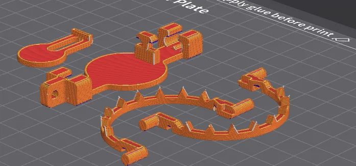 Mẫu móc khóa bẫy gấu (bear trap keychain) dạng package. Khi in xong, bạn sẽ cần chuẩn bị thêm vài sợi dây thun (rubber bands) để lắp ráp và sử dụng.