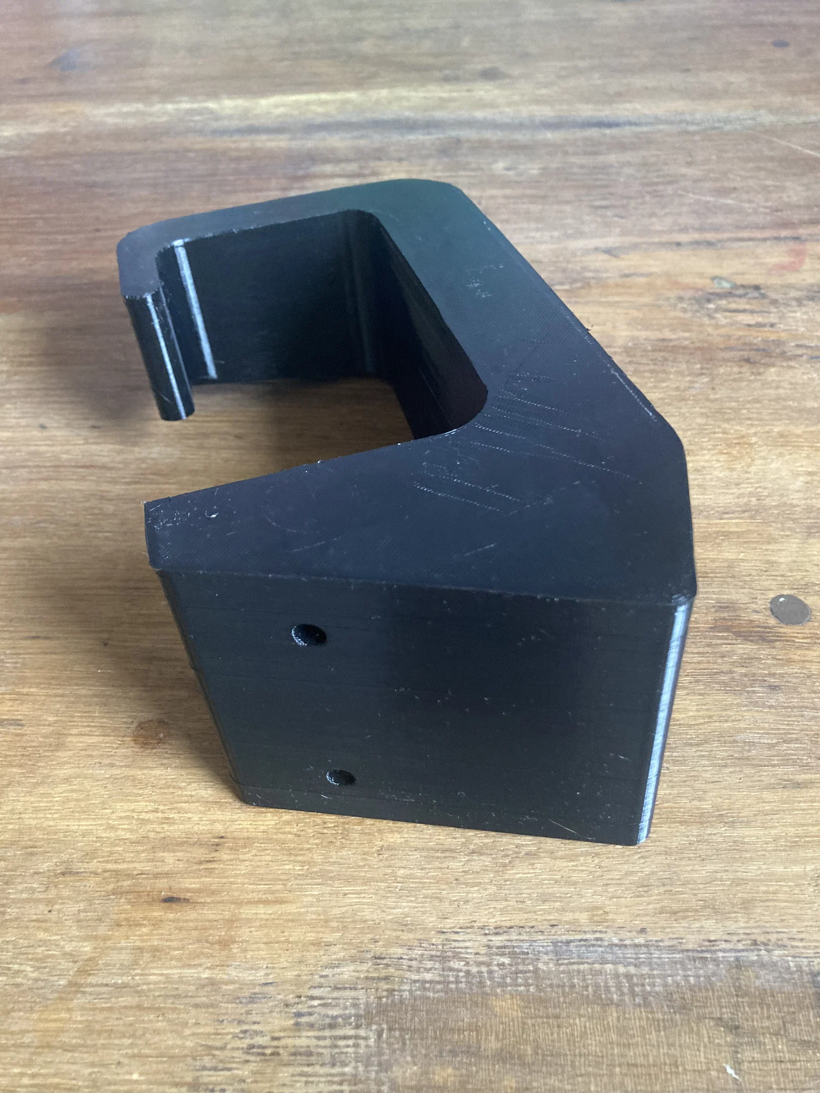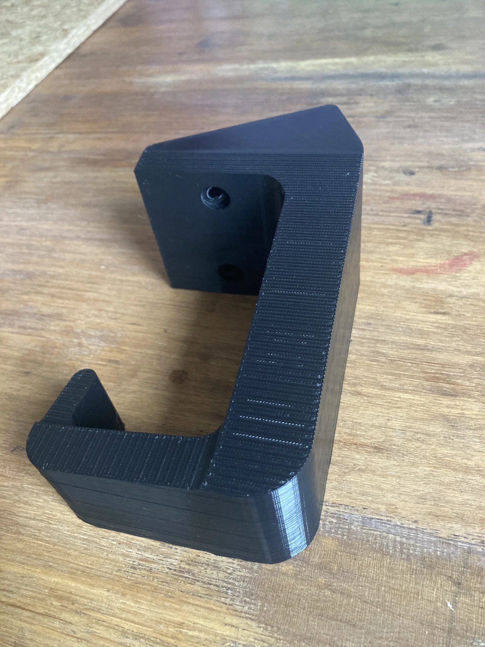 Móc treo xe đạp gắn tường theo kiểu treo dọc, đặt nghiêng 60° để tối ưu diện tích phòng nhỏ/tầng hầm. Thiết kế có 2 lỗ bắt vít M6; in với infill 20% cho độ chắc chắn, treo được nhiều xe trên cùng mảng tường.