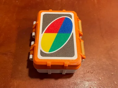Hộp Uno Game Box đa màu này được thiết kế để giúp bạn sắp xếp bộ bài Uno gọn gàng và lấy ra sử dụng dễ dàng. Với thiết kế sạch sẽ, hiện đại cùng logo “Uno Wild Card” nổi bật, chiếc hộp này vừa đẹp mắt vừa tiện dụng. Hộp có cùng kích thước đế (footprint) như các hộp đựng bài khác của tụi mình, giúp đồng bộ ngoại hình và xếp chồng (stacking) tiện lợi. Ngoài ra còn có các điểm gắn (attachment points) cho dây thun tùy chọn để giữ phần hướng dẫn đúng vị trí khi mở/đóng hộp. Hộp đi kèm các chốt (pins) có thể in để lắp ráp đơn giản, giúp bạn cất giữ thẻ game an toàn và ngăn nắp mà không phải lăn tăn nhiều.