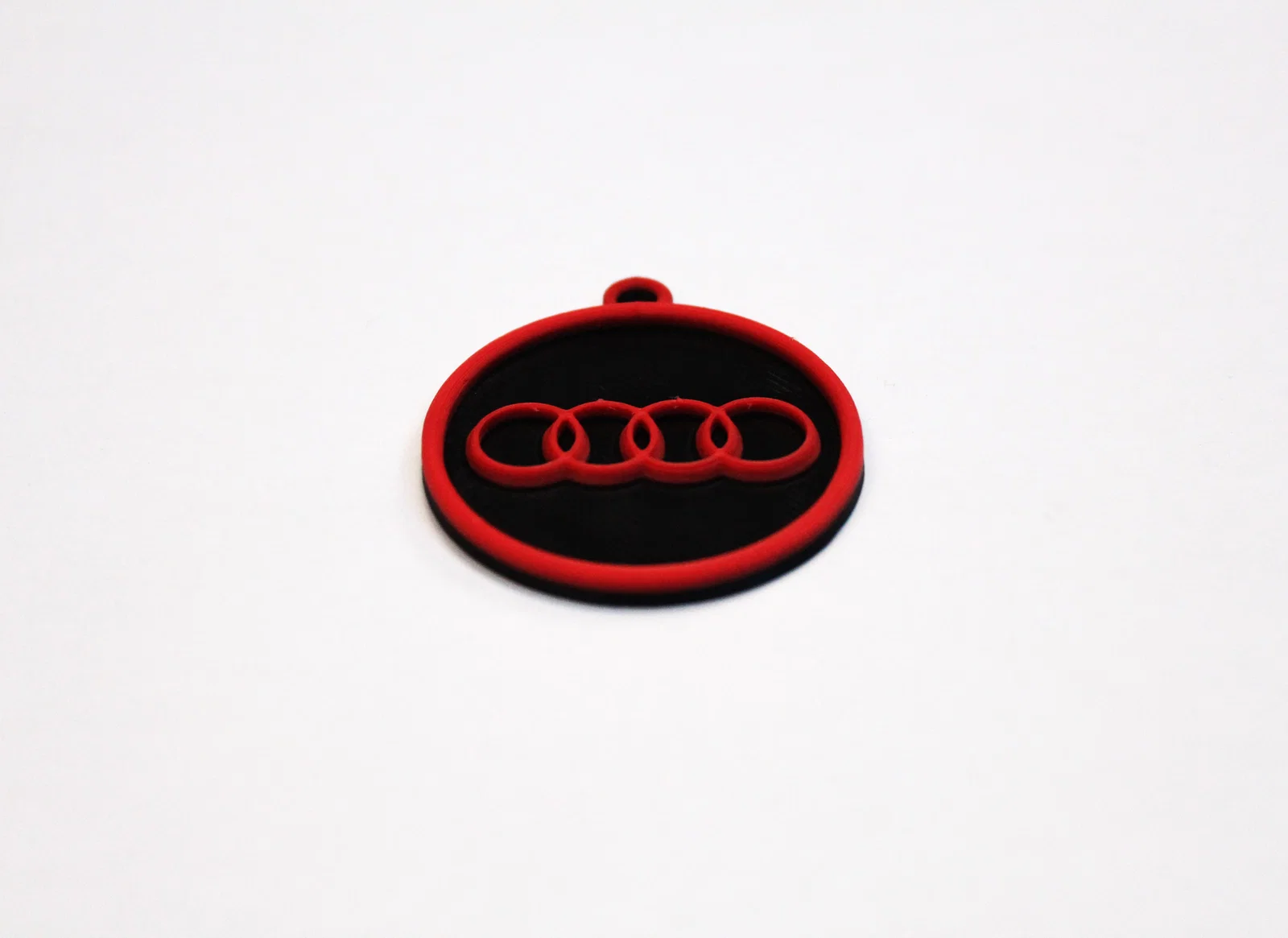Mẫu móc treo chìa khóa logo Audi do mình thiết kế để tặng bạn. Chia sẻ lại cho các bạn fan Audi. Lưu ý file không in 2 màu trực tiếp; hãy chèn pause trong gcode để đổi filament ở layer phù hợp.