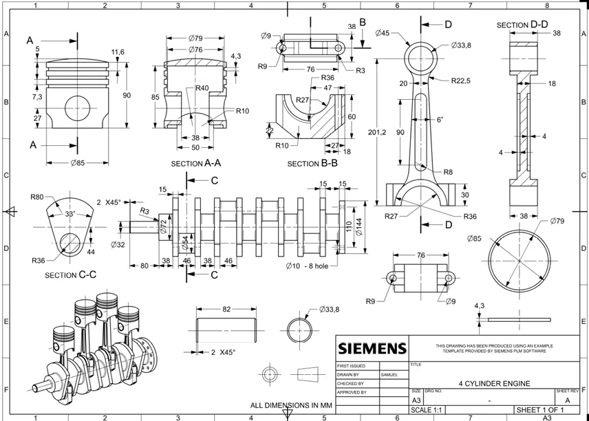 Lắp ráp và vẽ kỹ thuật động cơ 4 xi-lanh