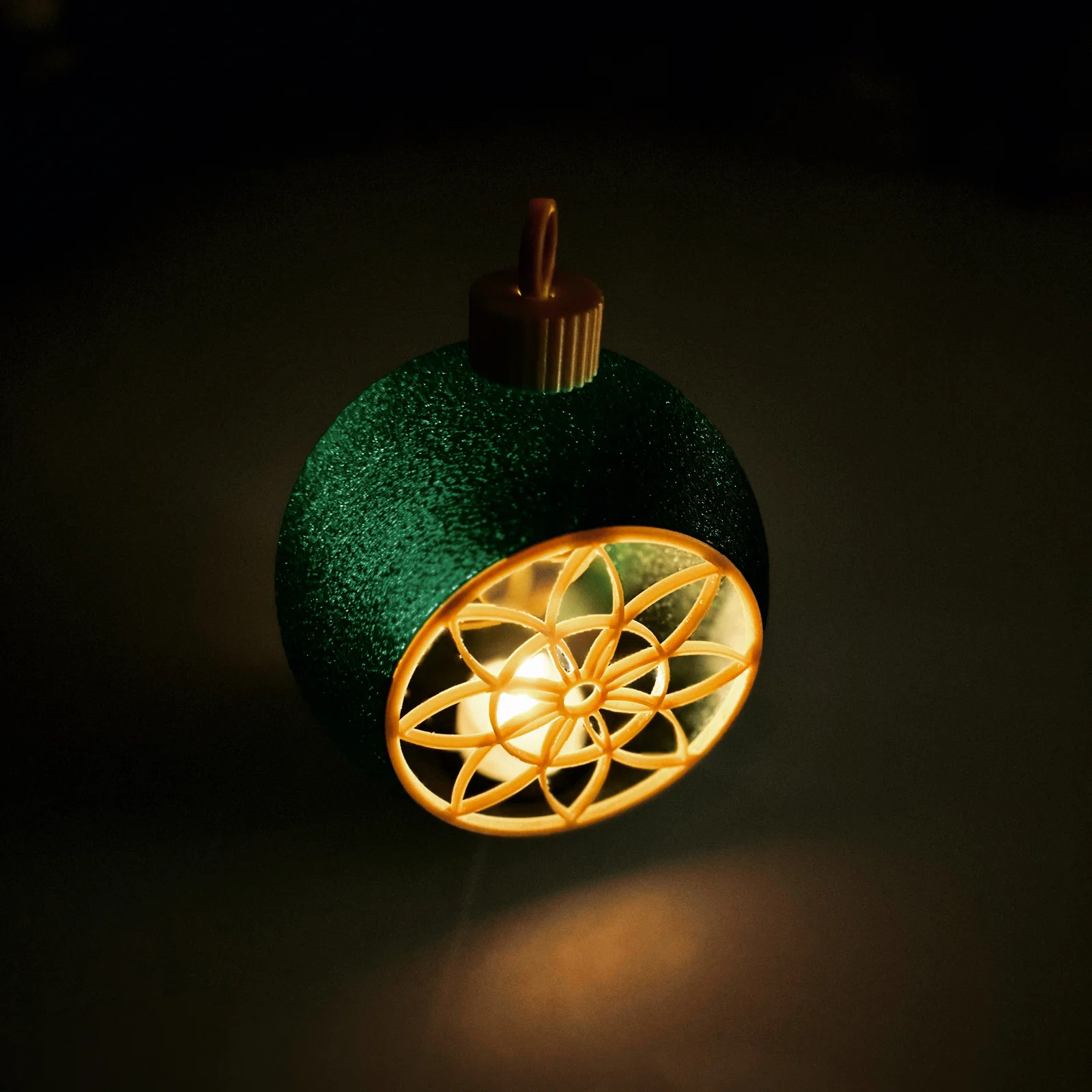 Tealight Snowglobe là mẫu ornament Noel dễ in, đẹp mắt để trưng riêng hoặc treo cây thông. In PLA, infill 15%, không cần support; có thể dùng Prusaslicer “Fuzzy skin” để tạo bề mặt texture. Dùng tealight LED, không dùng nến thật.
