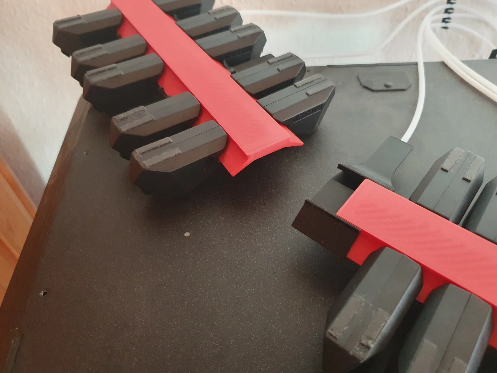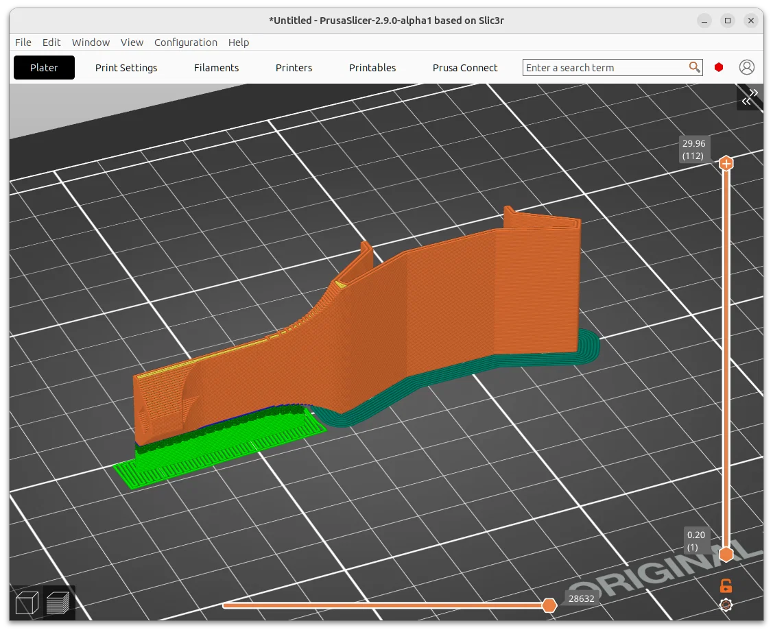 Thiết kế này gồm một connection-bar thẳng mới, có thể in trên MK4. Vì vậy nó được chia làm 2 mảnh để vừa print-bed của MK4. Hai mảnh này sẽ được nối lại bằng một PTFE-holder-connector bản rộng hơn.