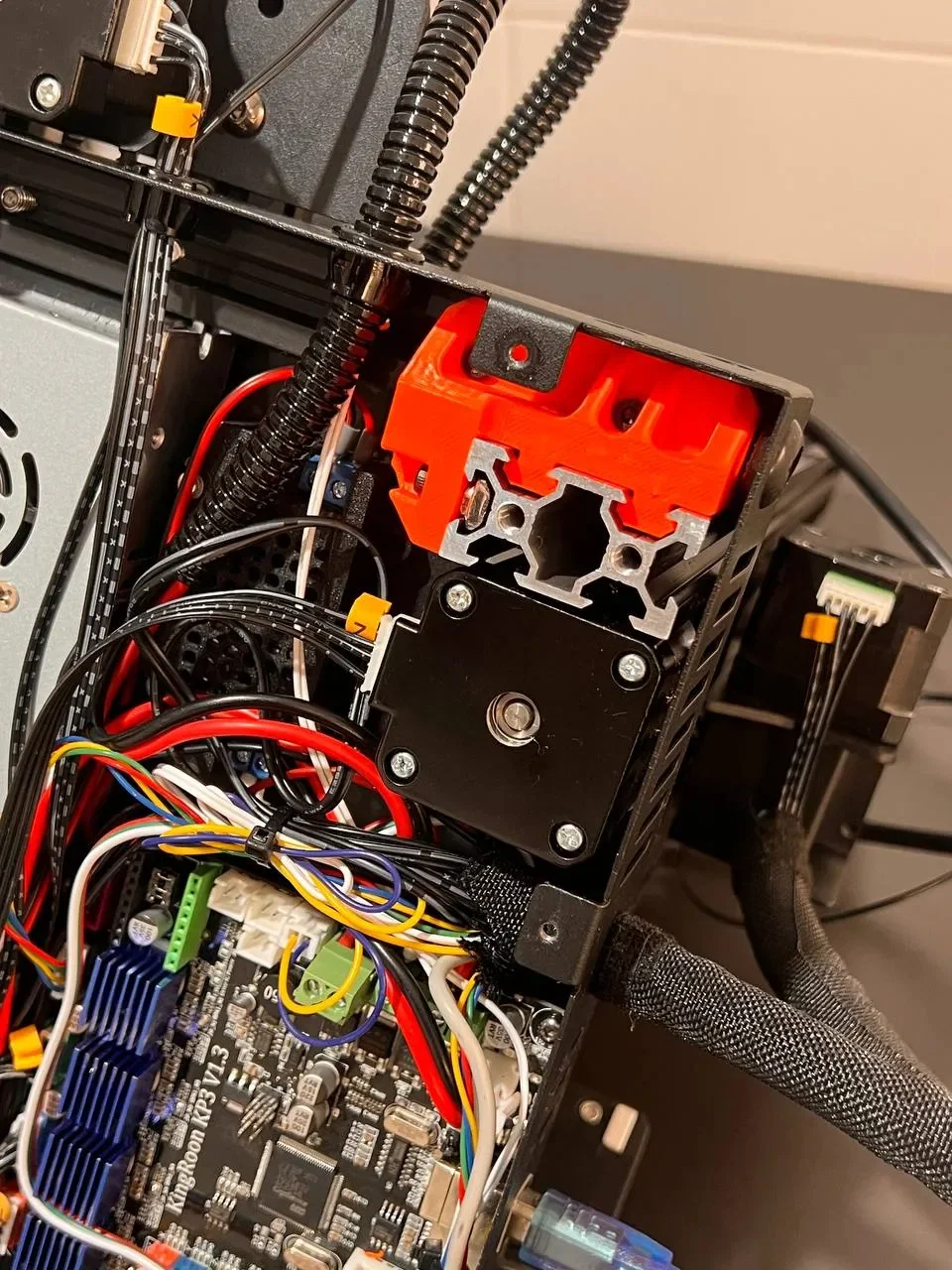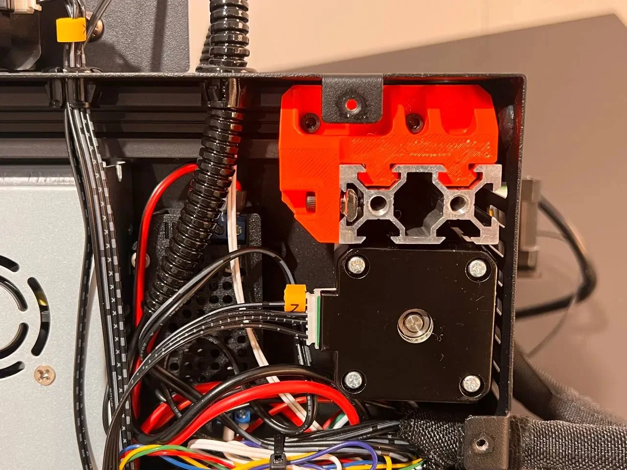 Đây là một thiết kế rất đơn giản, dễ in và dễ lắp. Mình đã tháo 2 con ốc ở nắp che khoang truy cập và trục vẫn rất ổn định, giúp việc bảo trì dễ hơn. Tháo ốc ra cũng giúp mình tiếp cận phần điện tử (electronics) thuận tiện hơn.