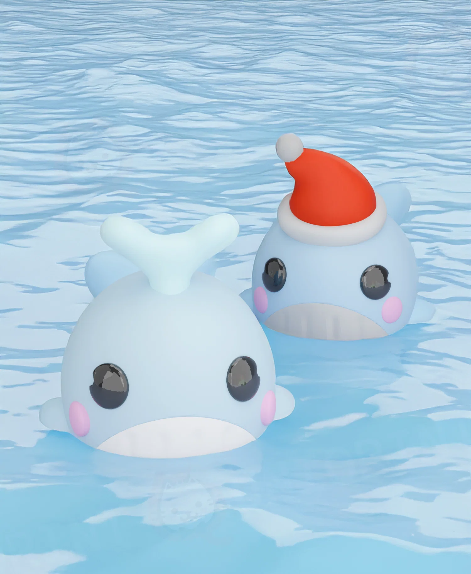Mẫu móc khóa cá voi dẻo chủ đề Noel (single color), khớp linh hoạt. Thiết kế dùng khoen 15mm (dây 0,8mm). Khuyến nghị in PLA+, layer height <0,2mm; có thể cần support và hậu xử lý để đẹp và an toàn.
