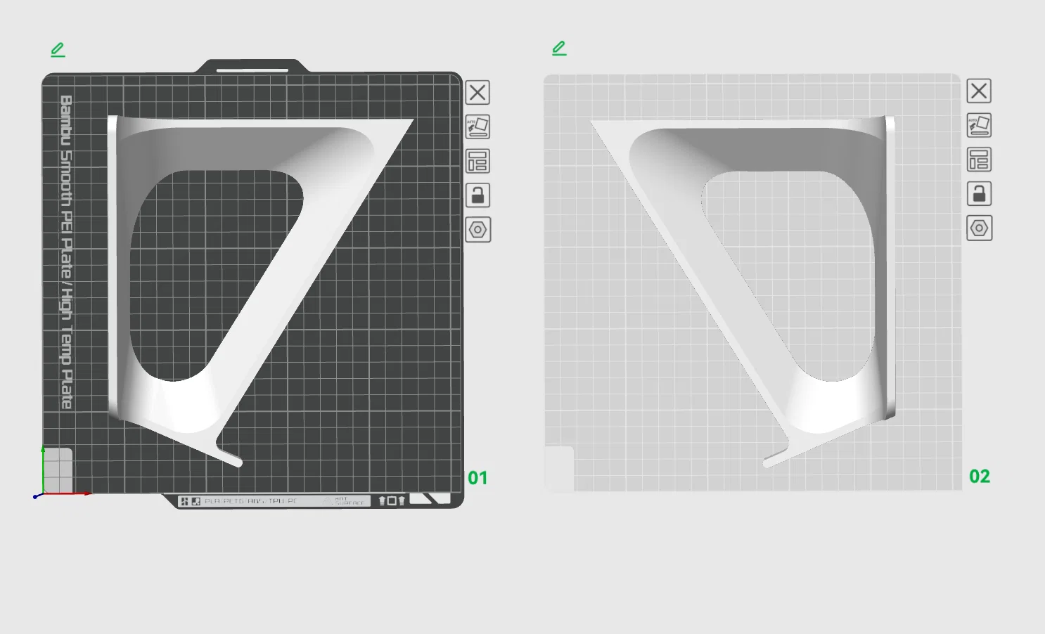 - Không cần supports (khi in theo đúng tư thế như trên hình).